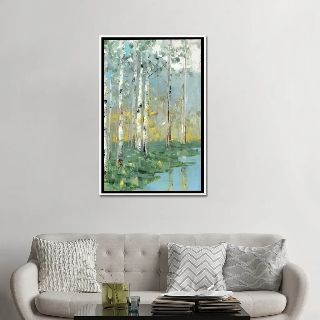 Icanvas "Birch Reflections Iii" By Sally Swatland Framed Canvas Print - White - 40x26