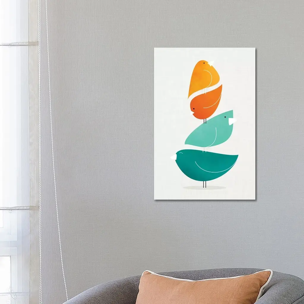 Icanvas "Bird Stack Ii" By Modern Tropical Canvas Print - 40x26x1.5