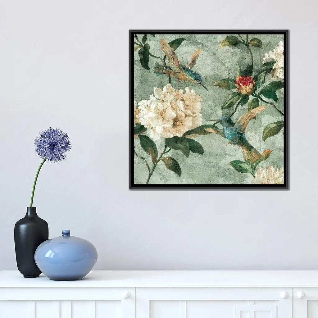 Icanvas "Birds Of A Feather I" By Renee Campbell Framed Canvas Print - Black - 12x12