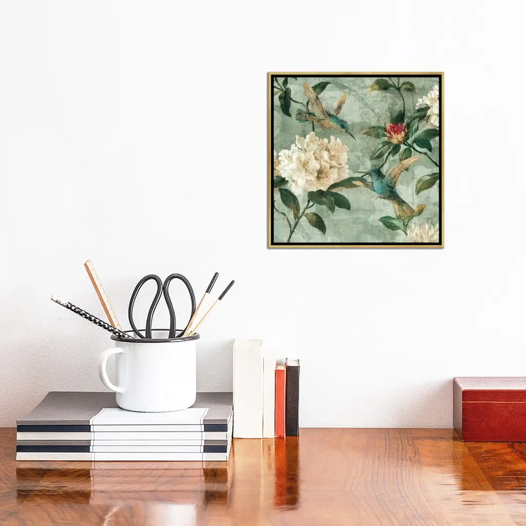 Icanvas "Birds Of A Feather I" By Renee Campbell Framed Canvas Print - Gold - 12x12