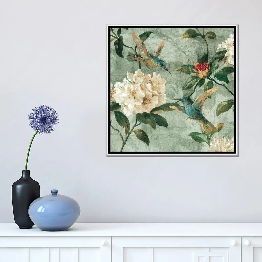 Icanvas "Birds Of A Feather I" By Renee Campbell Framed Canvas Print - Gold - 26x26