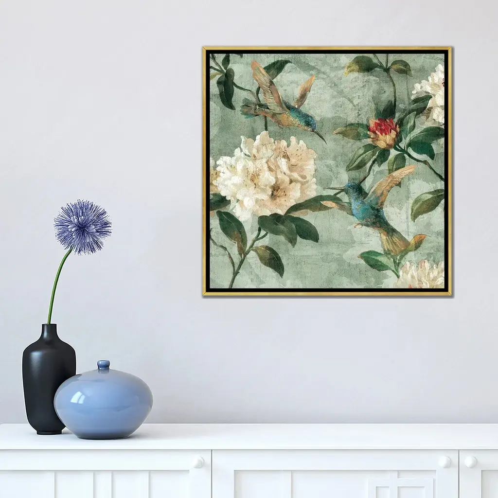 Icanvas "Birds Of A Feather I" By Renee Campbell Framed Canvas Print - Gold - 37x37