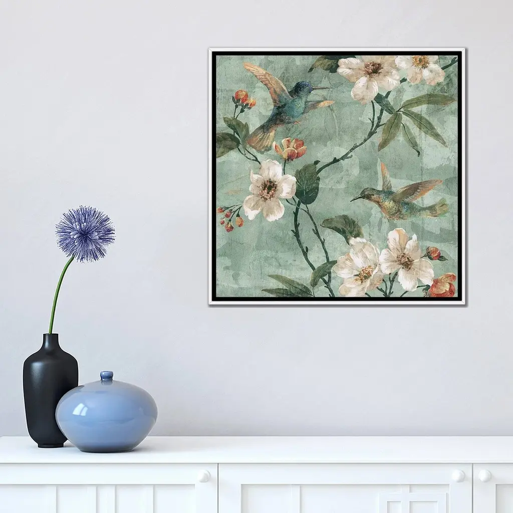 Icanvas "Birds Of A Feather Ii" By Renee Campbell Framed Canvas Print - Gold - 26x26