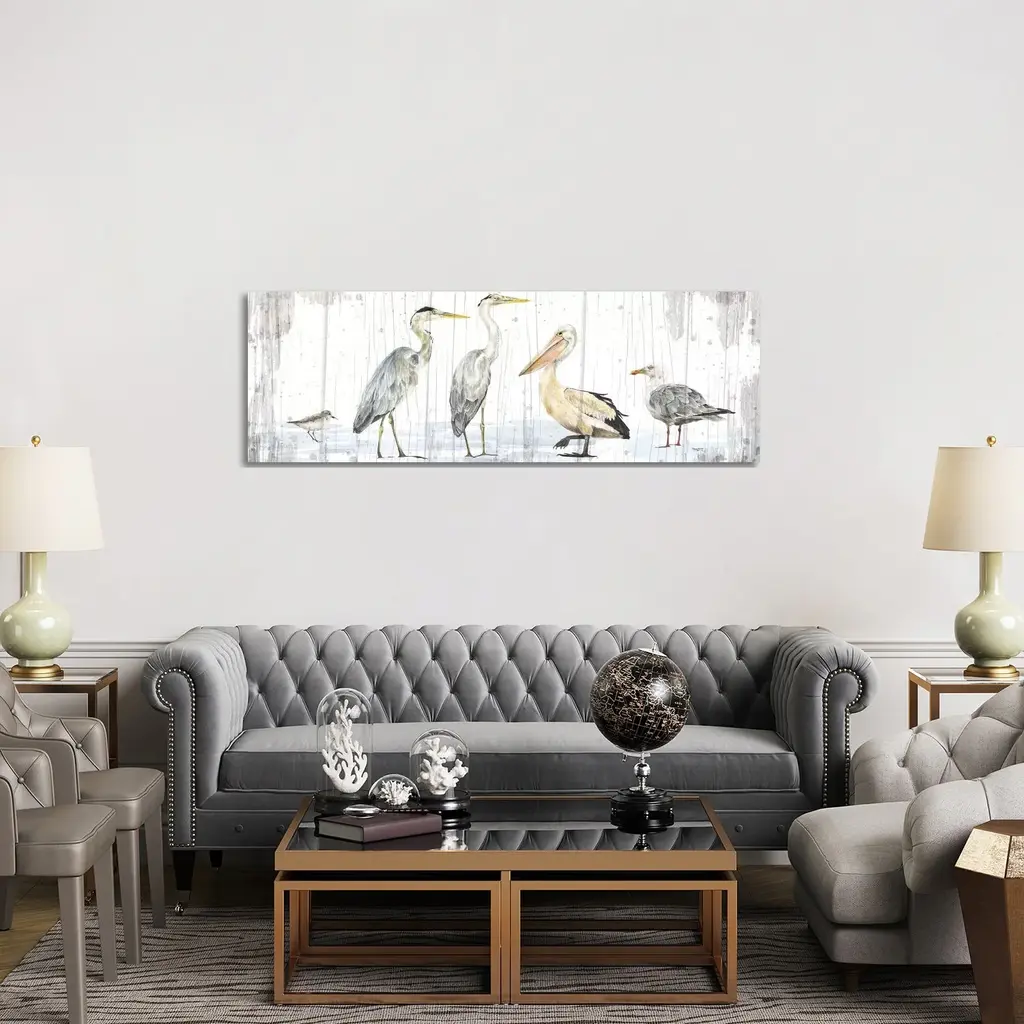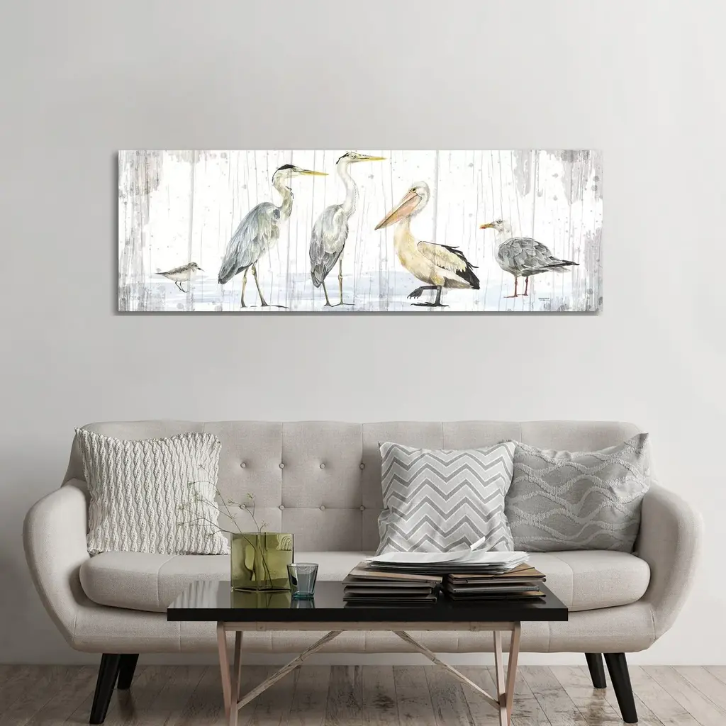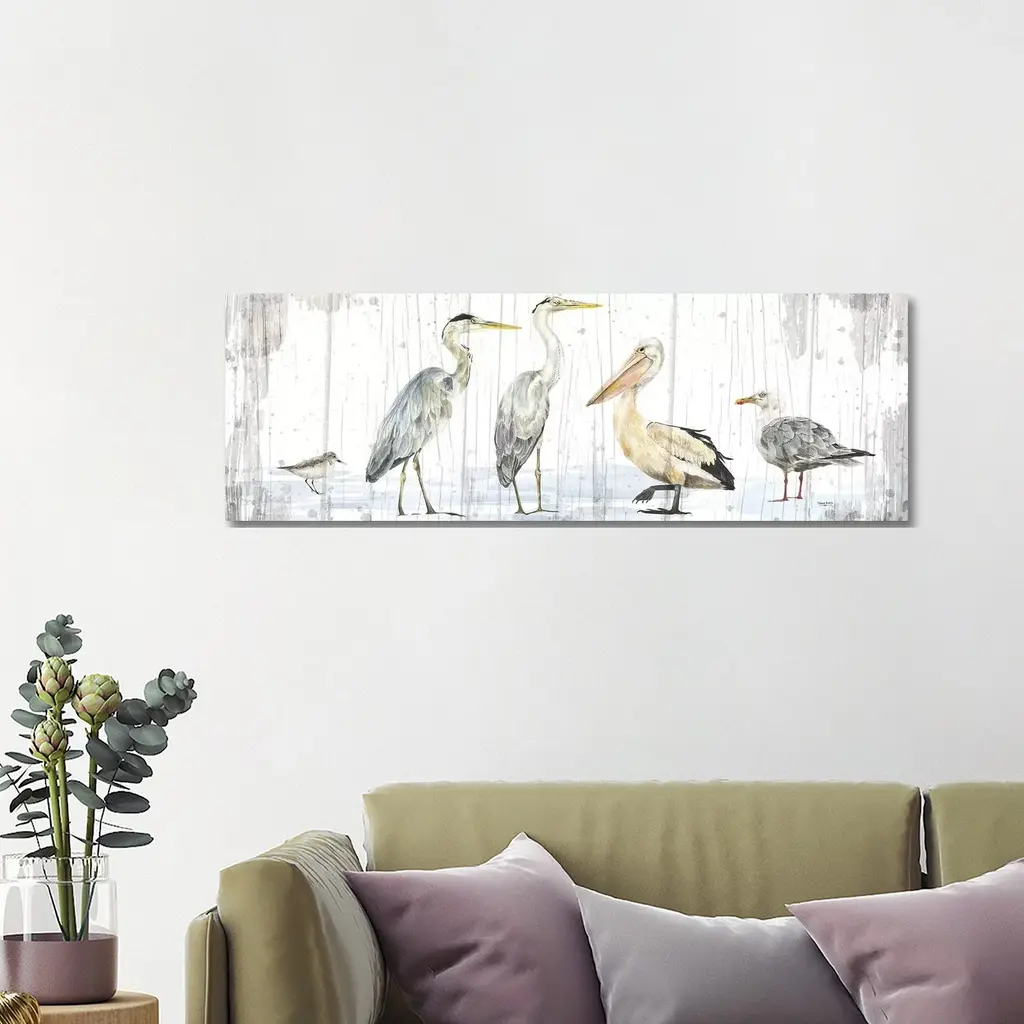 Icanvas "Birds Of The Coast Rustic Panel" By Tara Reed Canvas Print - 12x36x1.5
