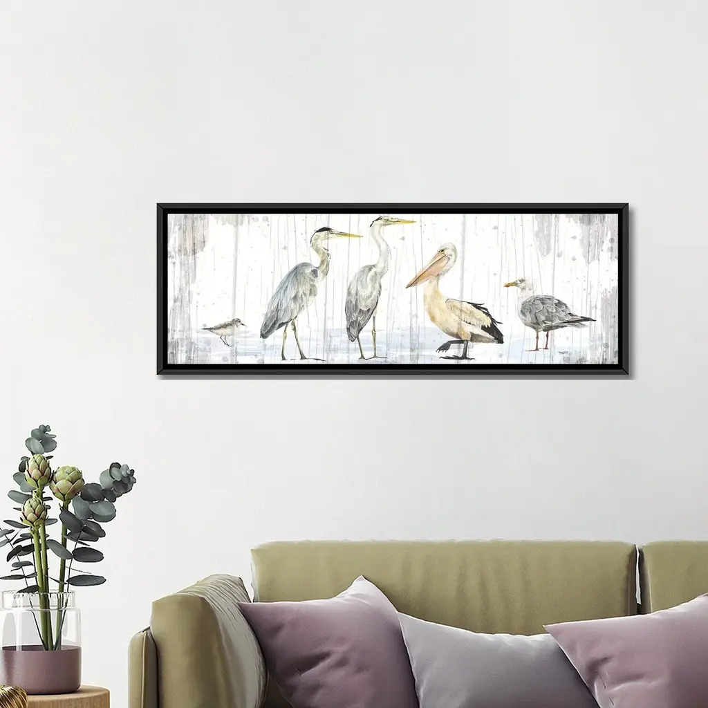 Icanvas "Birds Of The Coast Rustic Panel" By Tara Reed Framed Canvas Print - 16x48 - Black