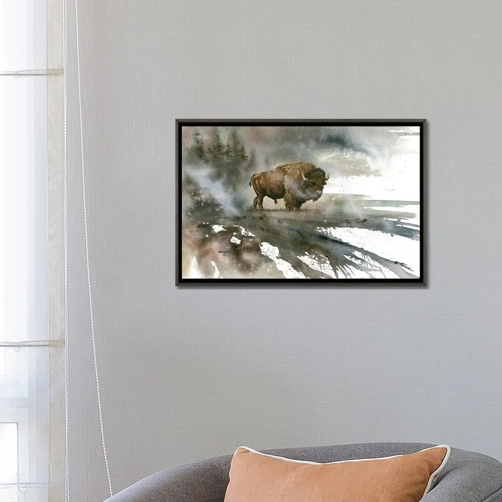Icanvas "Bison" By Dave Bartholet Framed - Ebony - 26x40