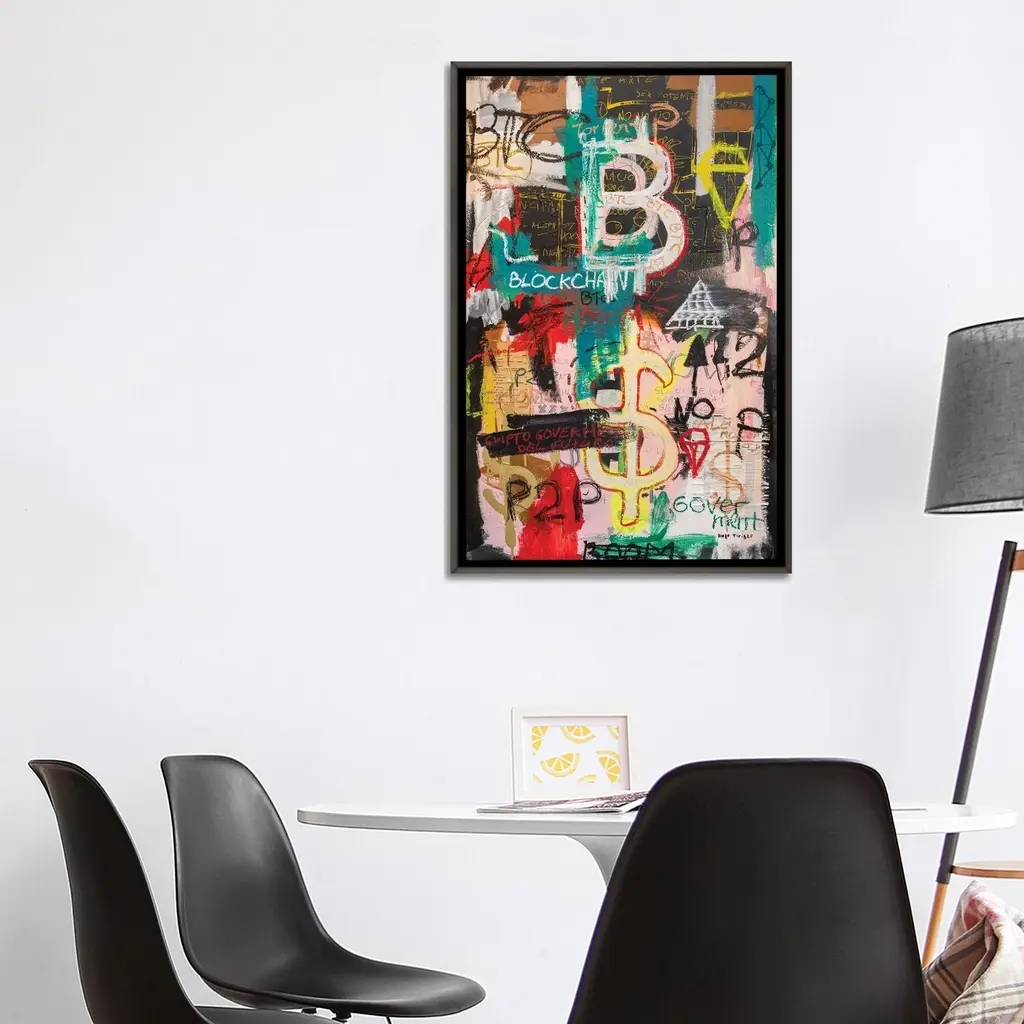 Icanvas "Bitcoin And Blockchain Boom" By Diego Tirigall Framed - Charcoal - 40x26