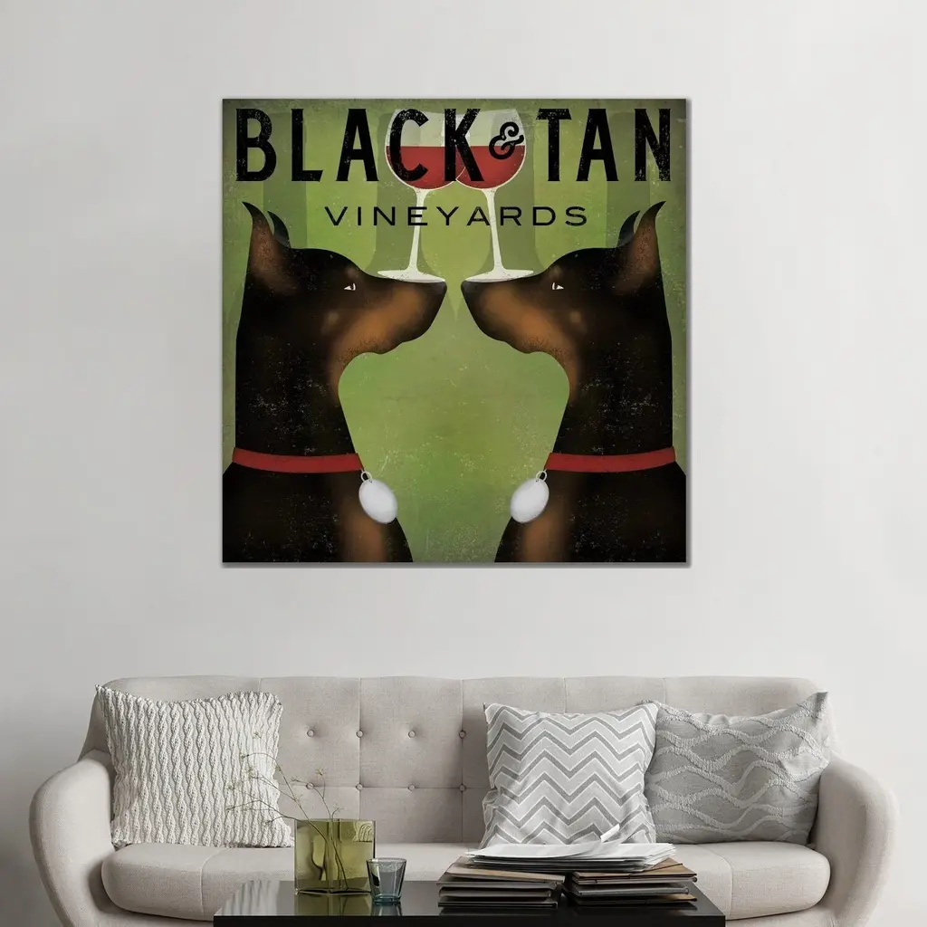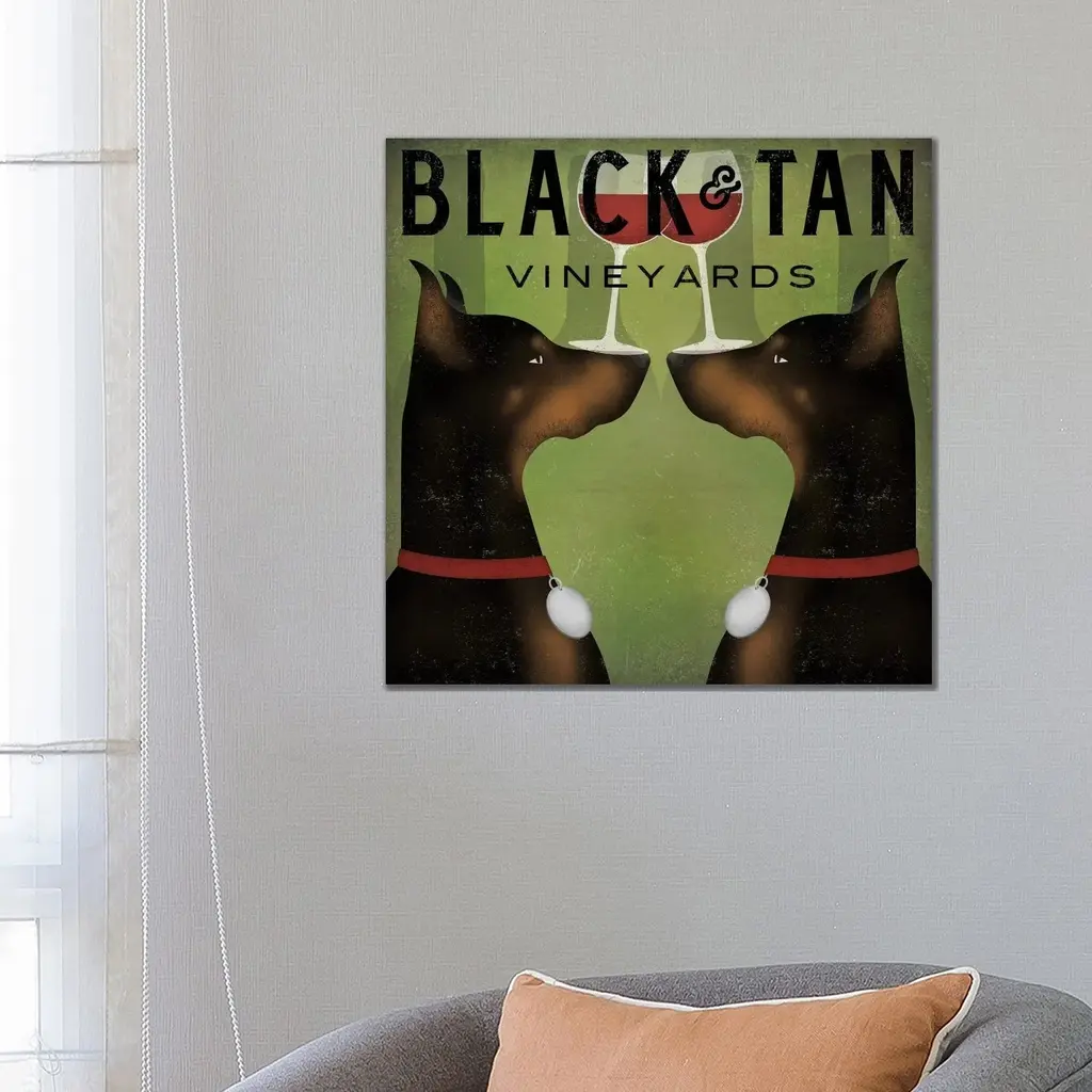 Icanvas "Black & Tan Vineyards (Doberman Pinschers)" By Ryan Fowler Canvas Print - 18x18x1.5