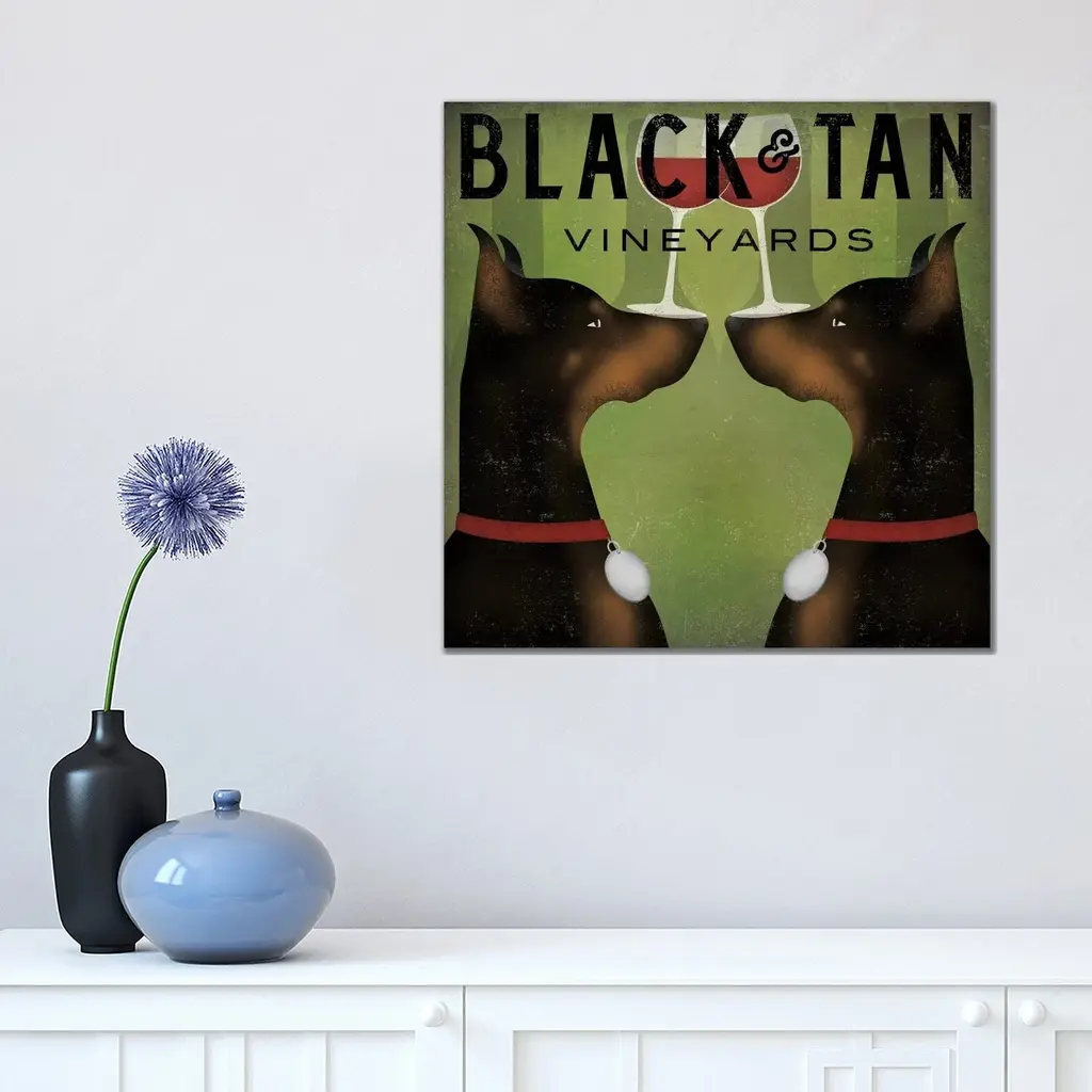 Icanvas "Black & Tan Vineyards (Doberman Pinschers)" By Ryan Fowler Canvas Print - 26x26x1.5