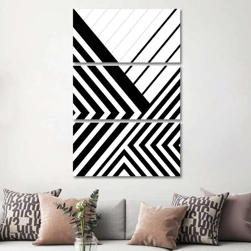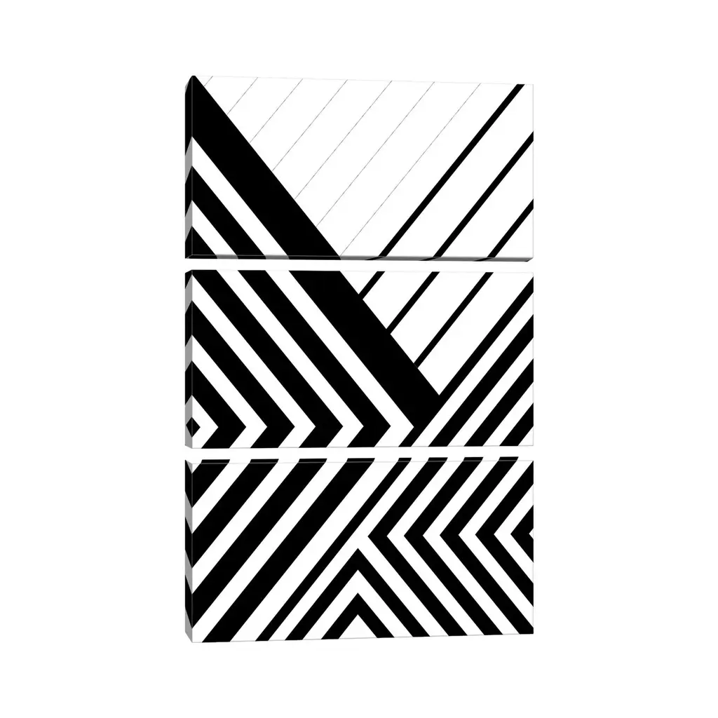 Icanvas "Black And White Geo Lines Iii" By Urban Epiphany 3-Piece Canvas Wall Art Set - 60x40x1.5