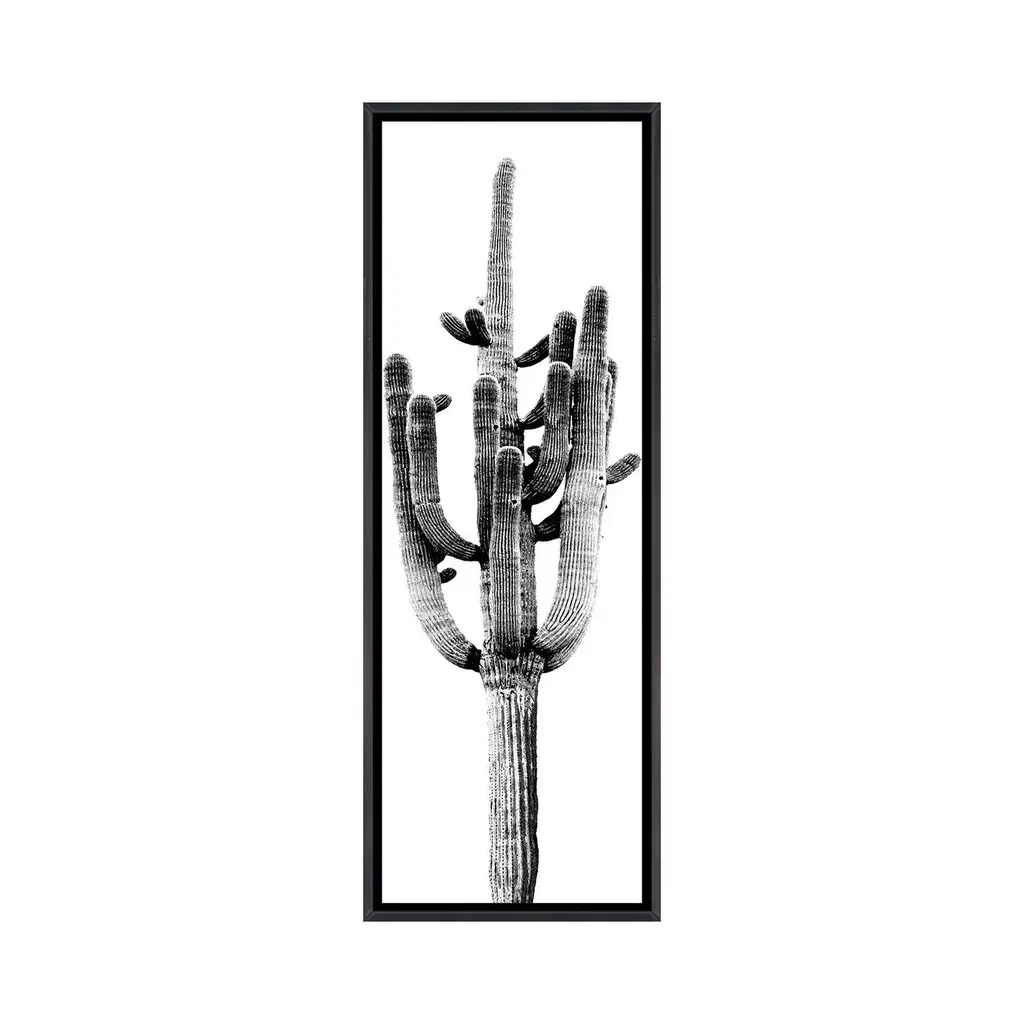 Icanvas "Black & White Saguaro Cactus Ii" By Mia Jensen Framed - 36x12 - Ebony