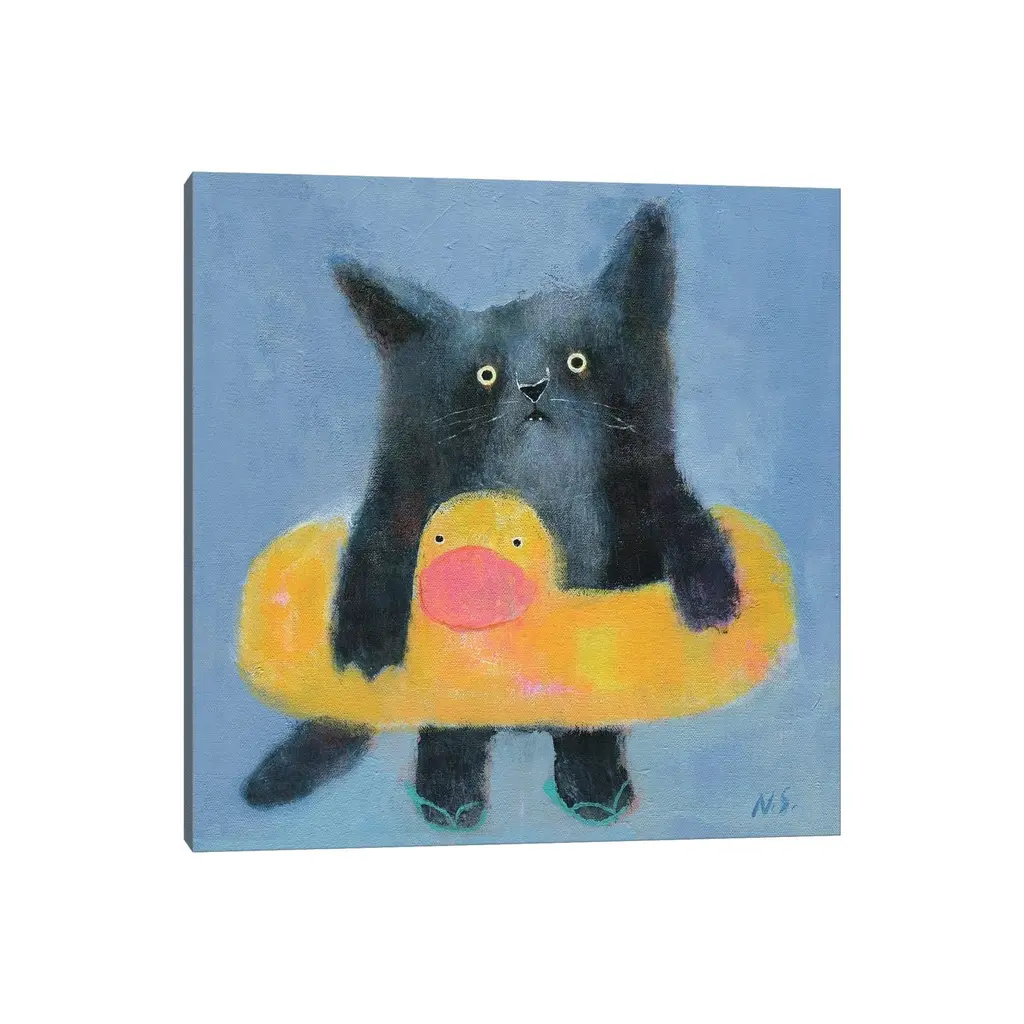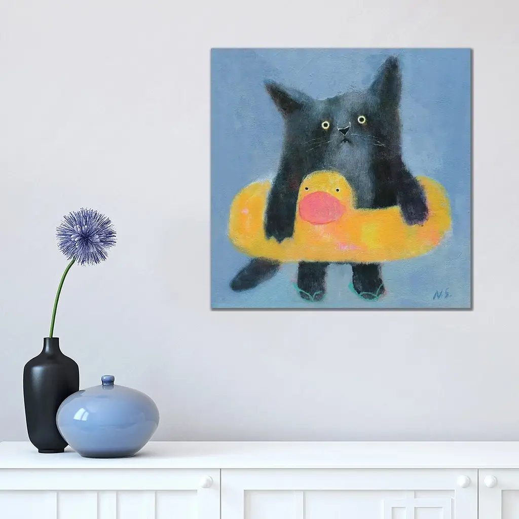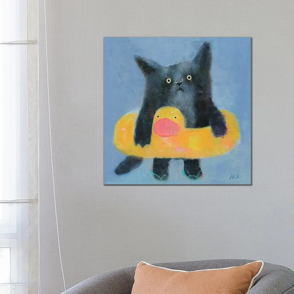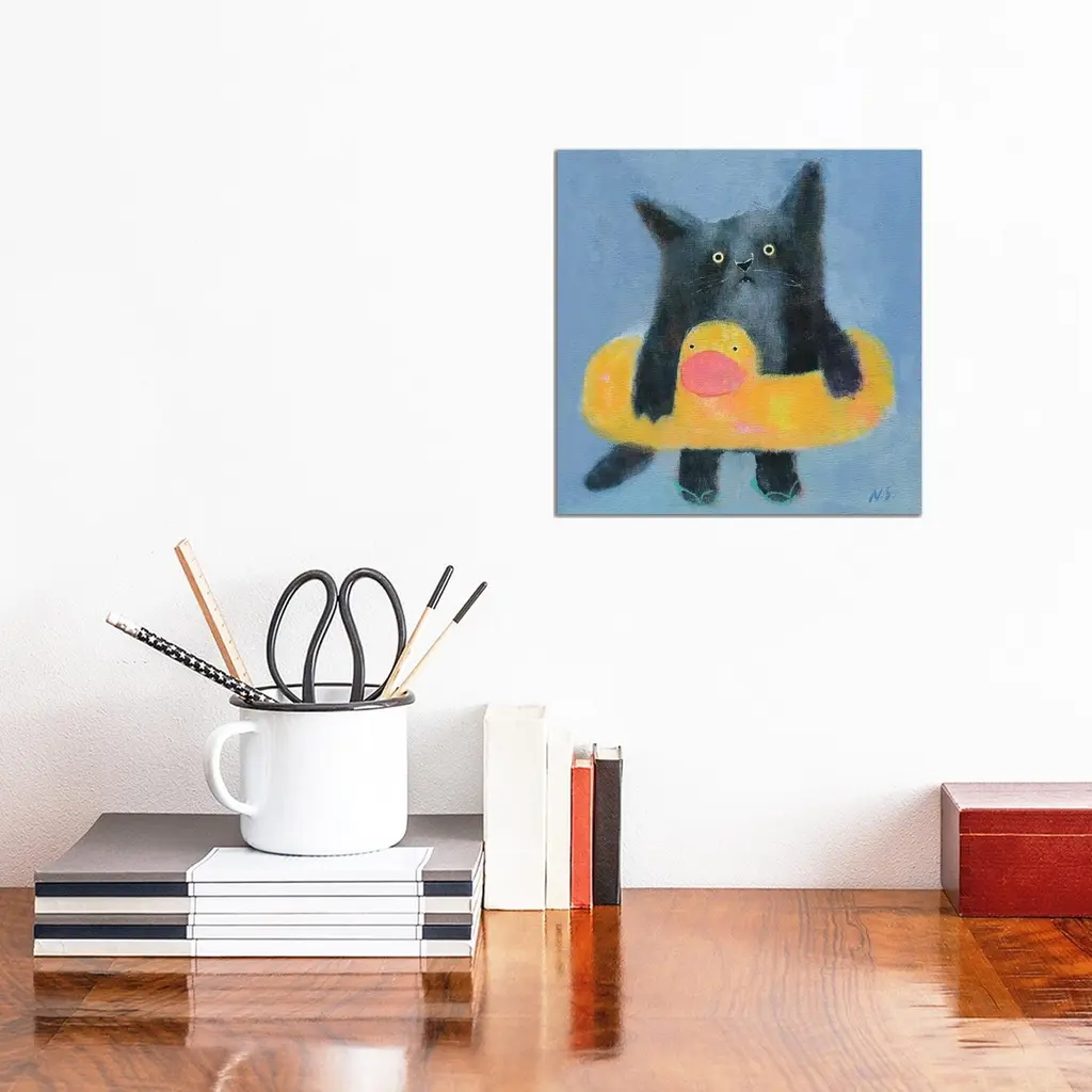 Icanvas "Black Cat With Bath Tube" By Natalia Shaloshvili Canvas Print - 18x18x1.5