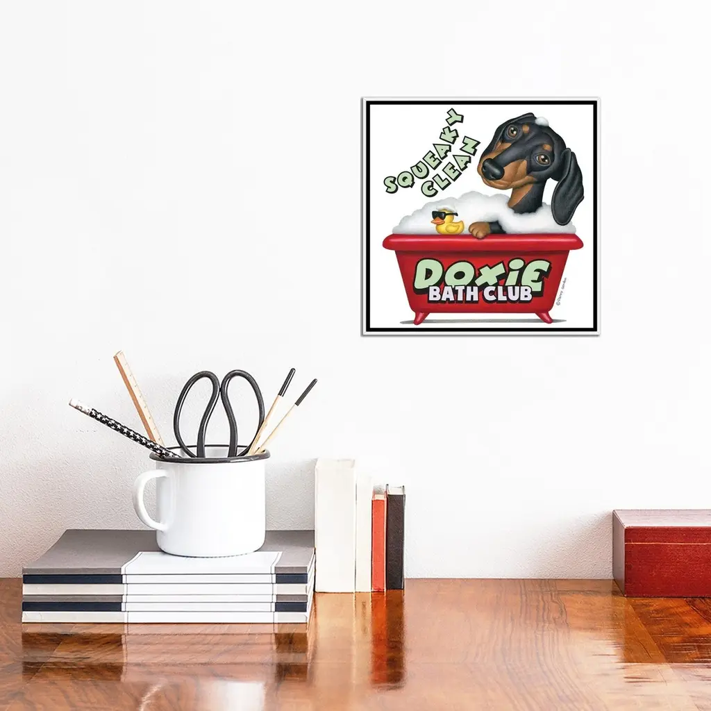 Icanvas "Black Dachshund Squeaky Clean" By Danny Gordon Framed Canvas Print - 12x12 - White