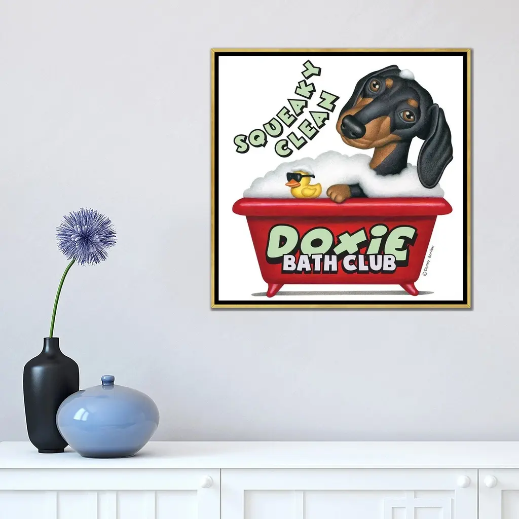 Icanvas "Black Dachshund Squeaky Clean" By Danny Gordon Framed Canvas Print - 18x18 - Gold