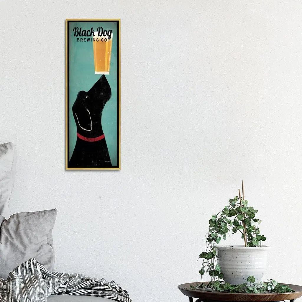 Icanvas "Black Dog Brewing Co." By Ryan Fowler Framed Canvas Print - 36x12 - Gold