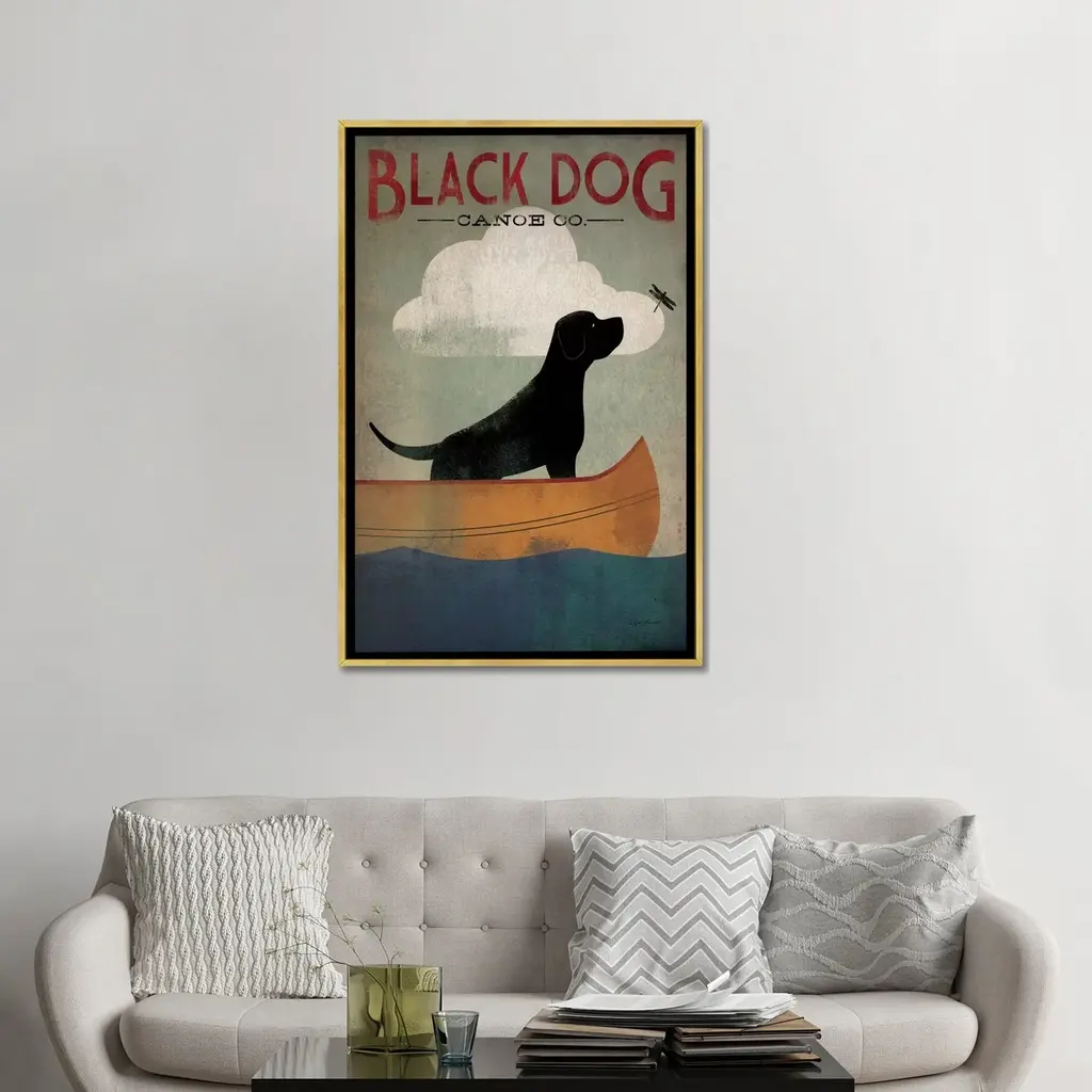 Icanvas "Black Dog Canoe Co. I" By Ryan Fowler Framed Canvas Print - Gold - 48x32