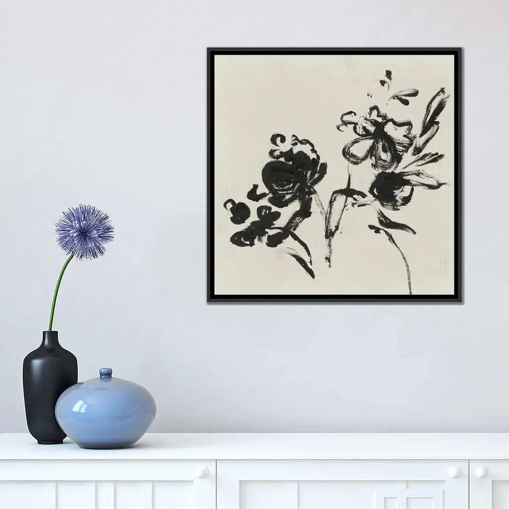 Icanvas "Black Florals I" By Isabelle Z Framed Canvas Print - Black - 26x26