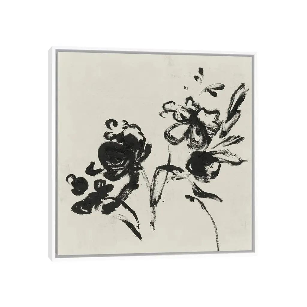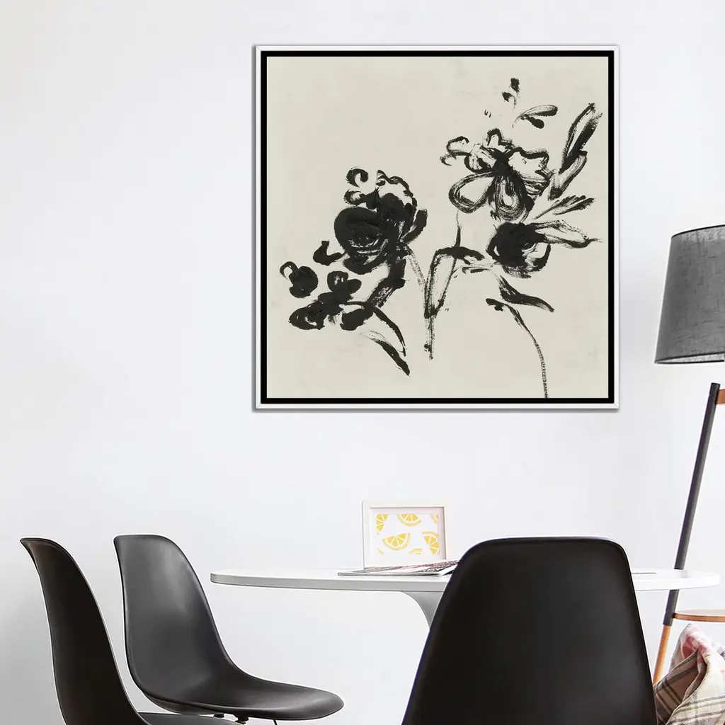 Icanvas "Black Florals I" By Isabelle Z Framed Canvas Print - Gold - 18x18
