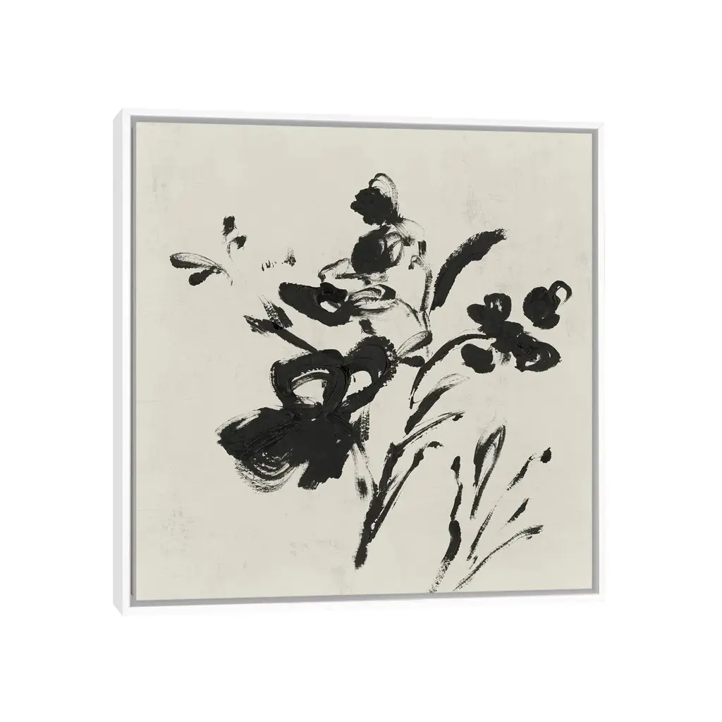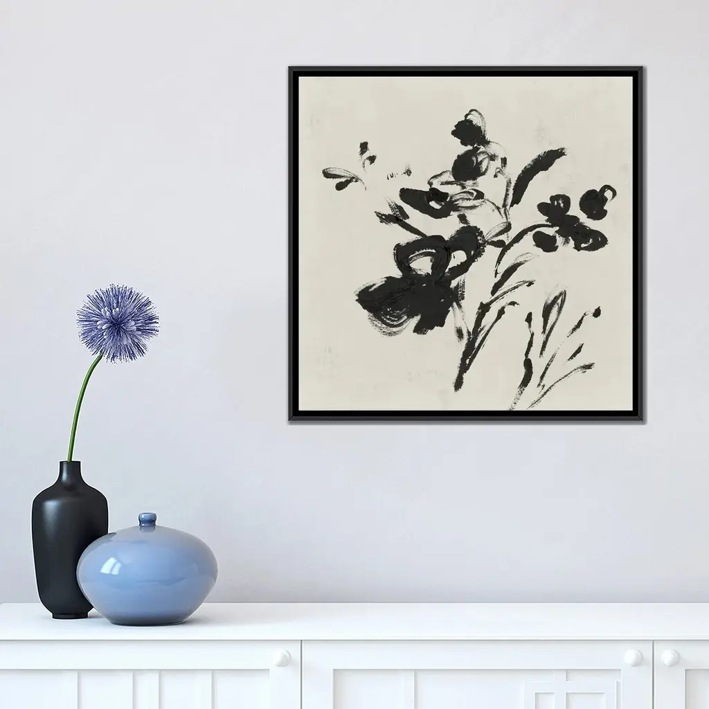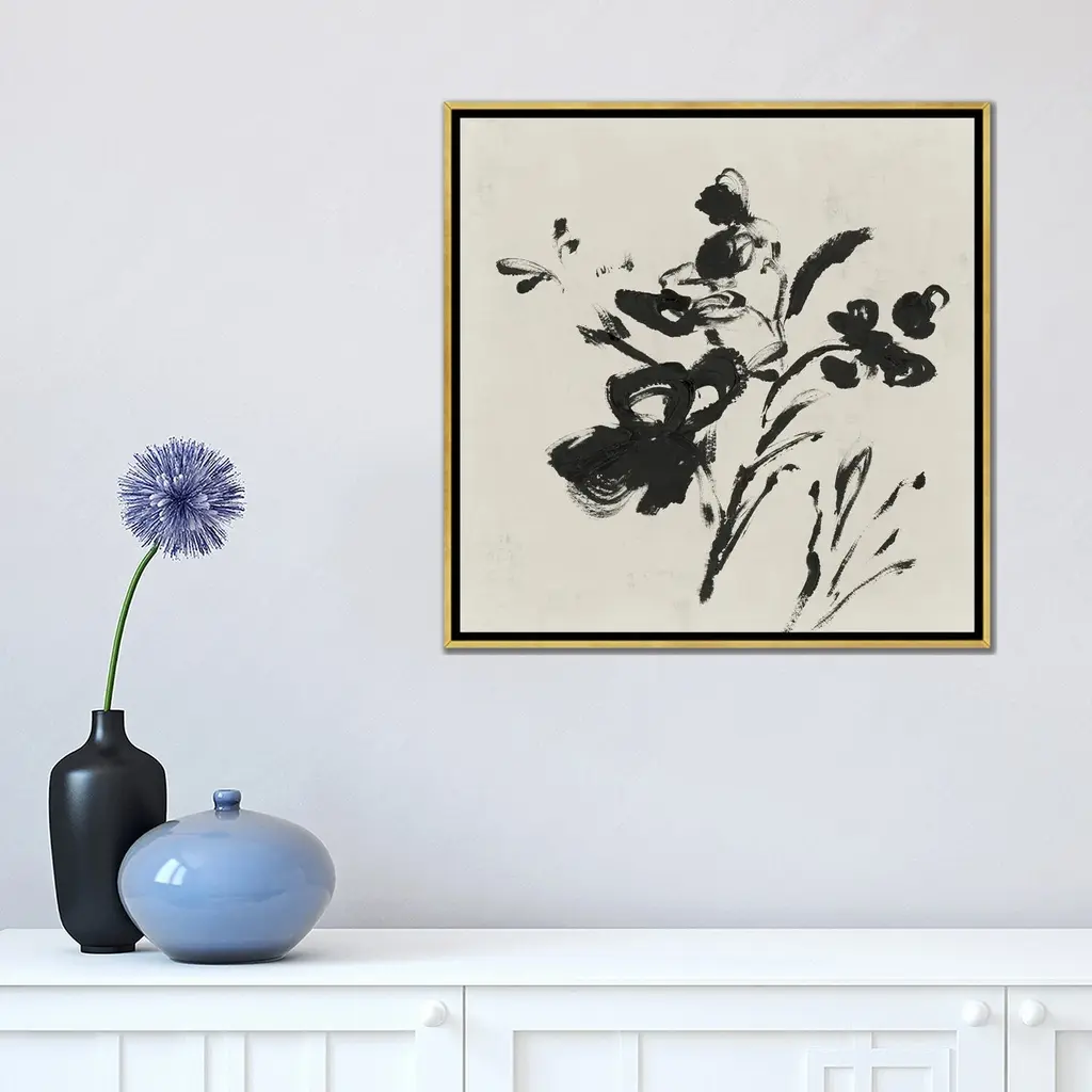 Icanvas "Black Florals Ii" By Isabelle Z Framed Canvas Print - Gold - 12x12
