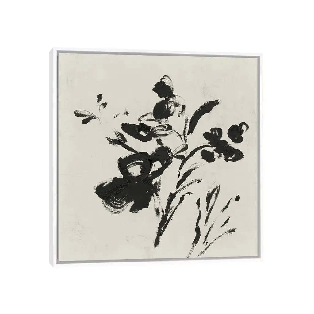 Icanvas "Black Florals Ii" By Isabelle Z Framed Canvas Print - Gold - 18x18