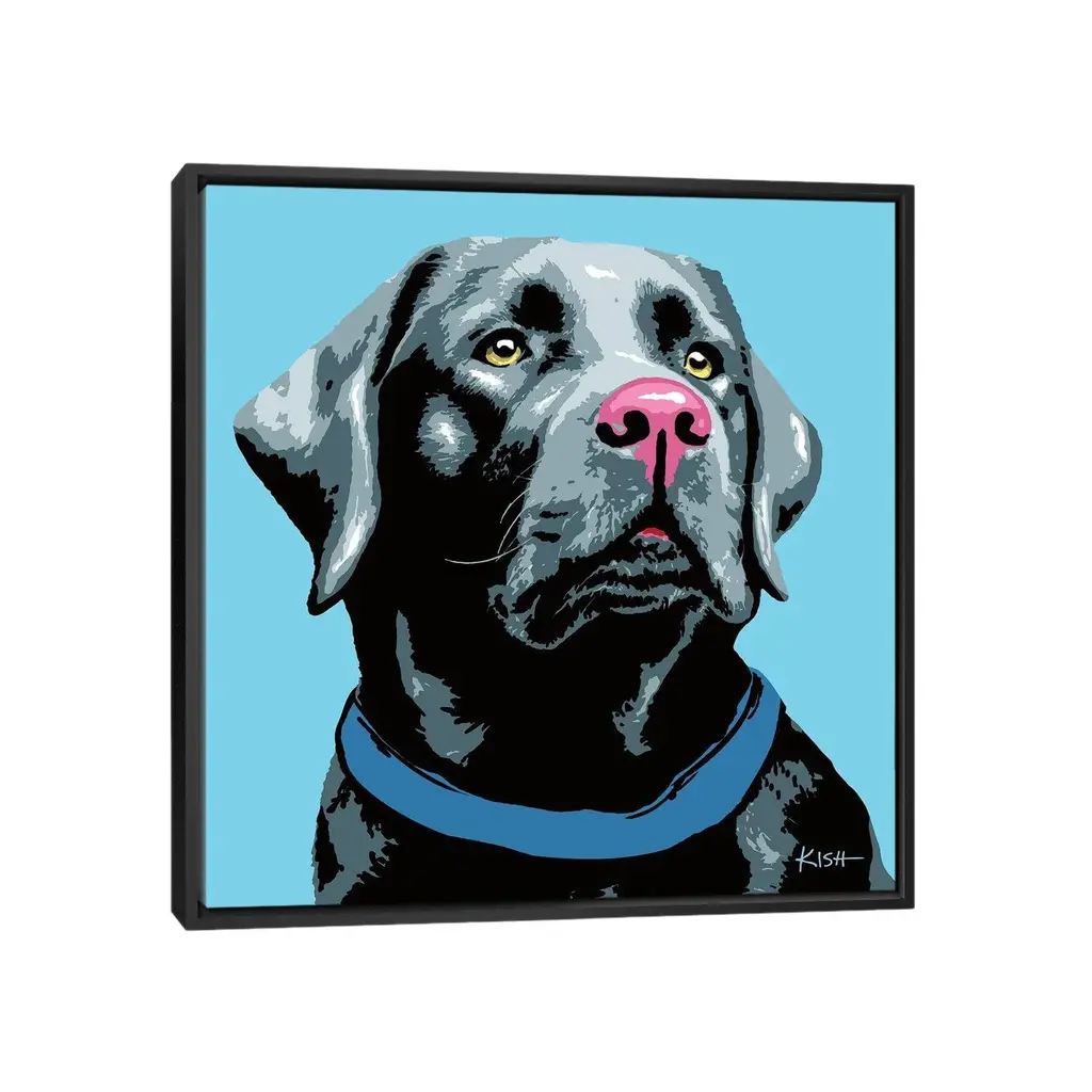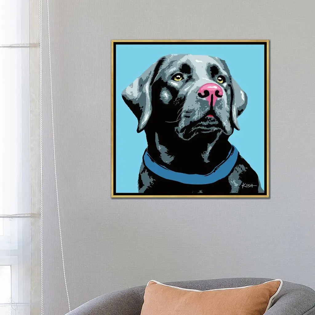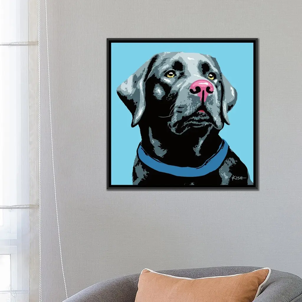 Icanvas "Black Lab Blue Woofhol" By Gretchen Kish Serrano Framed Canvas Print - Black - 37x37