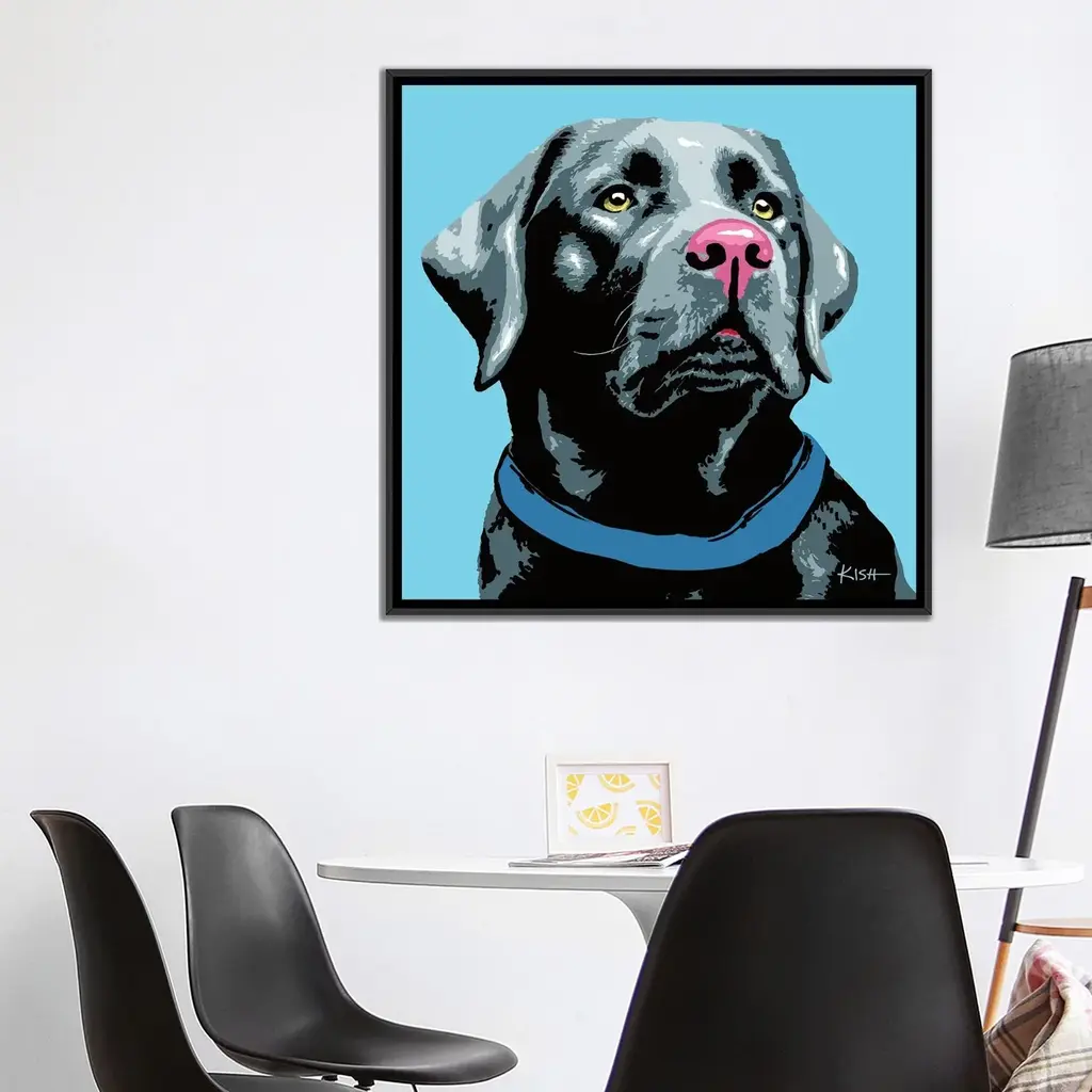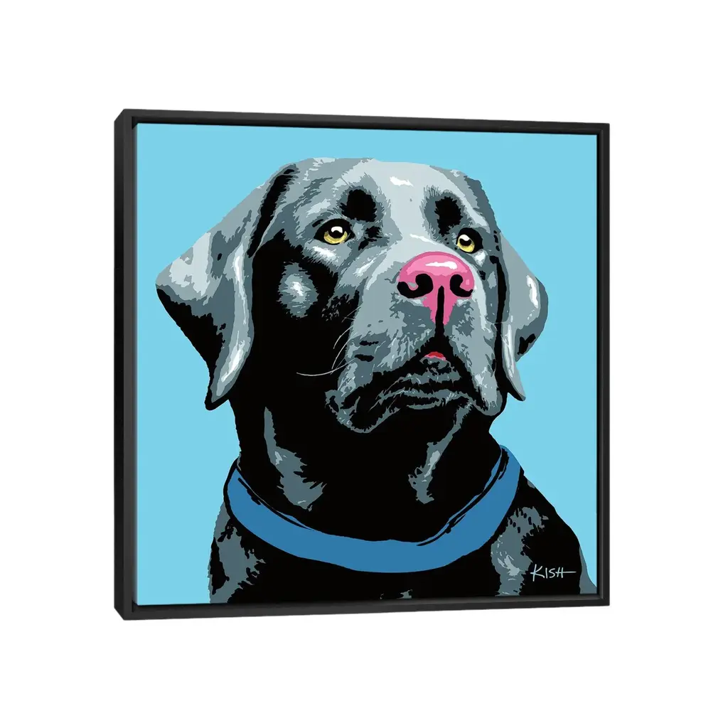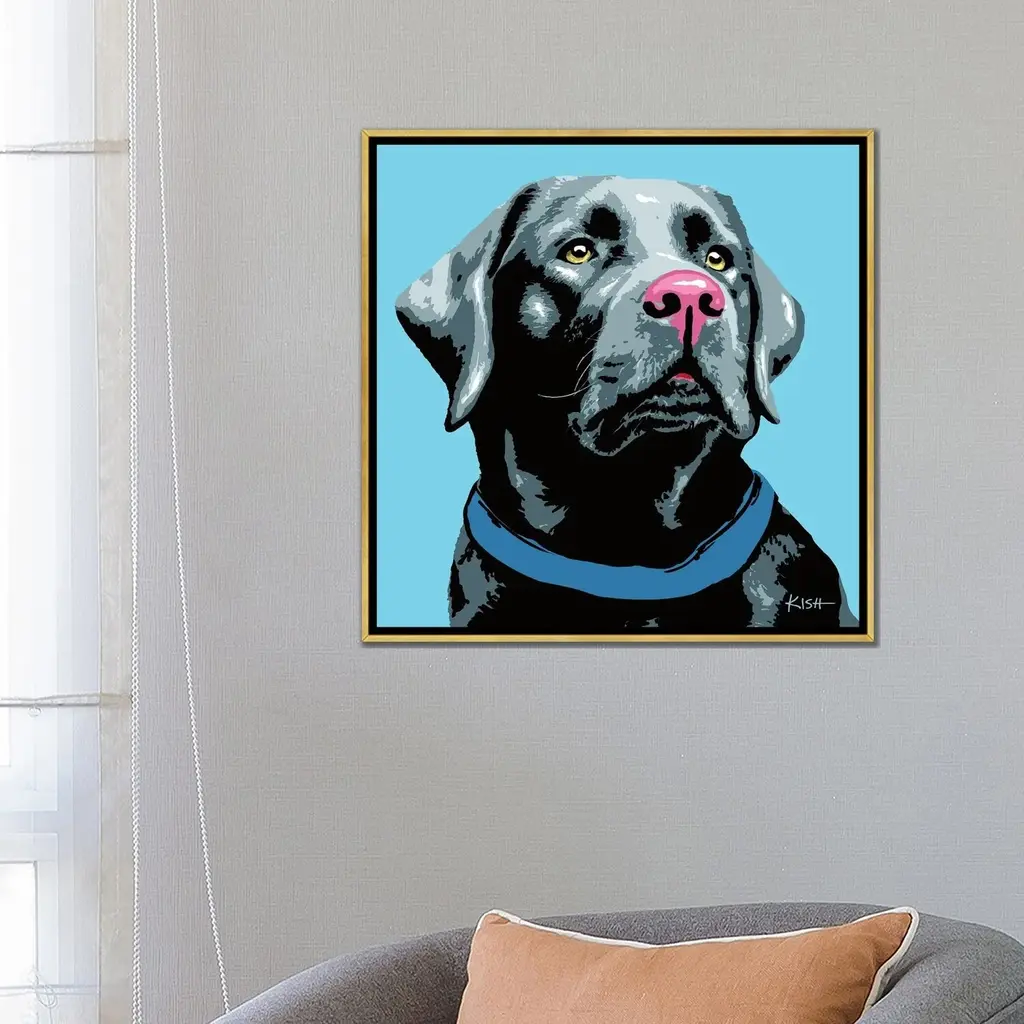 Icanvas "Black Lab Blue Woofhol" By Gretchen Kish Serrano Framed Canvas Print - Gold - 37x37