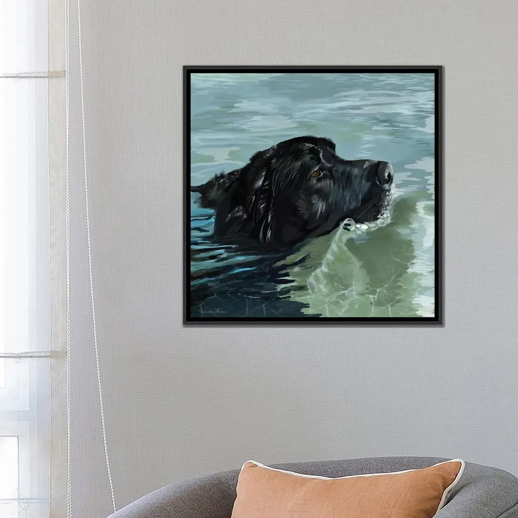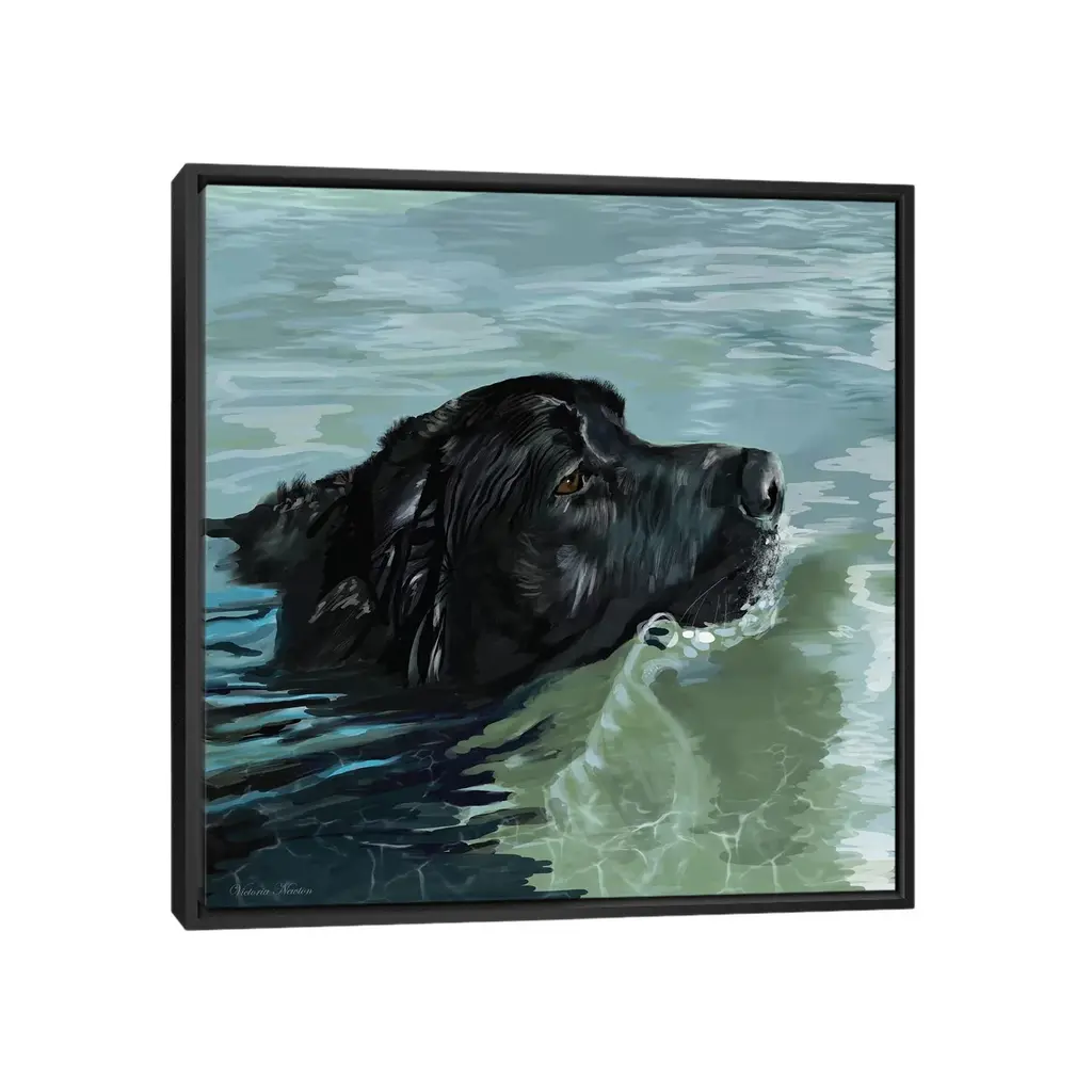 Icanvas "Black Lab Swimming" By Vicki Newton Framed Canvas Print - Gold - 37x37