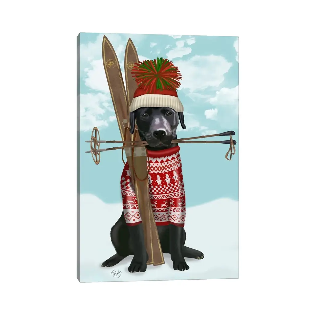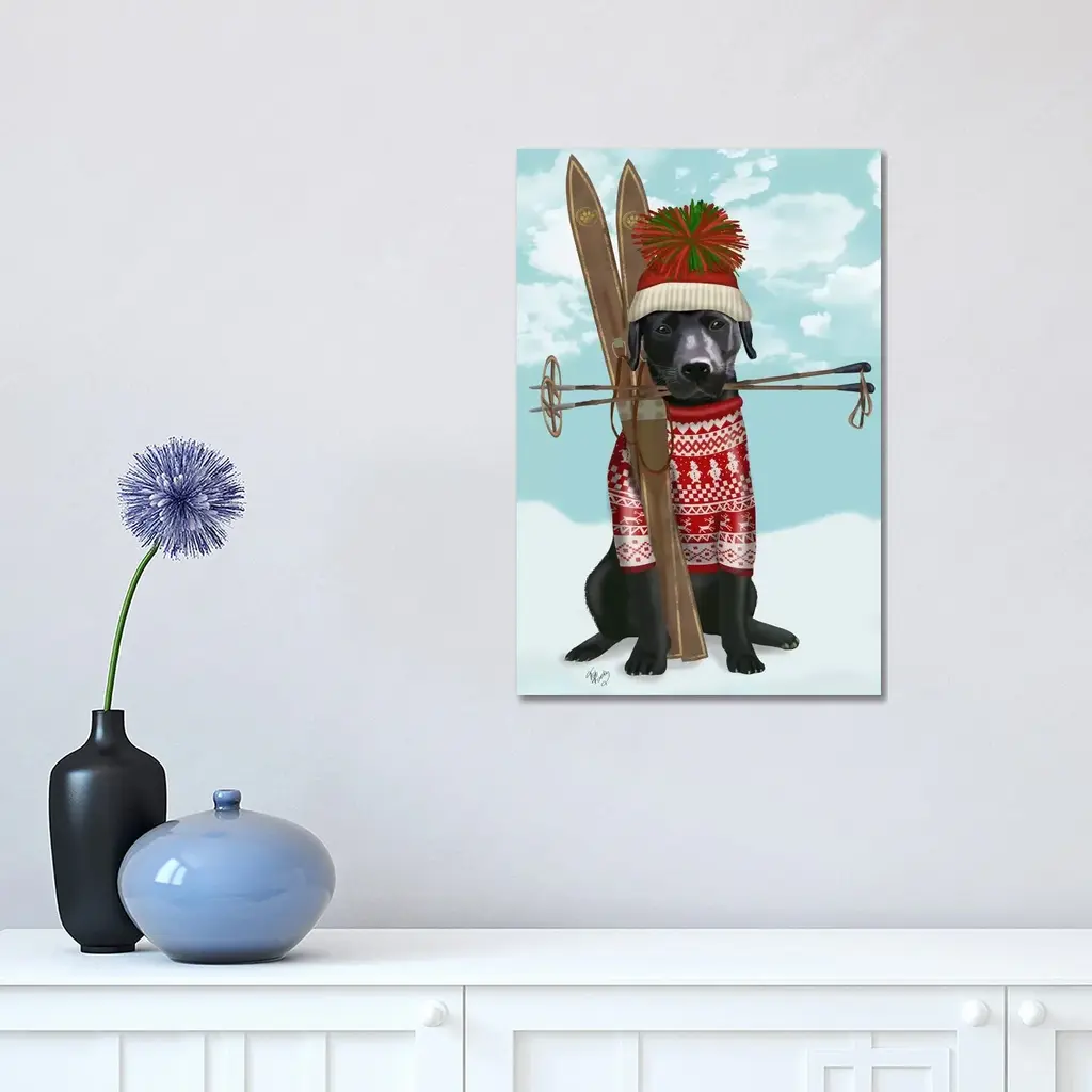 Icanvas "Black Labrador, Skiing" By Fab Funky Canvas Print - 18x12x1.5