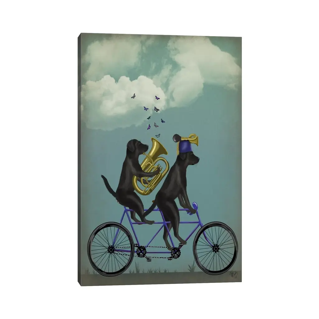Icanvas "Black Labrador Tandem" By Fab Funky Canvas Print - 12x8x0.75