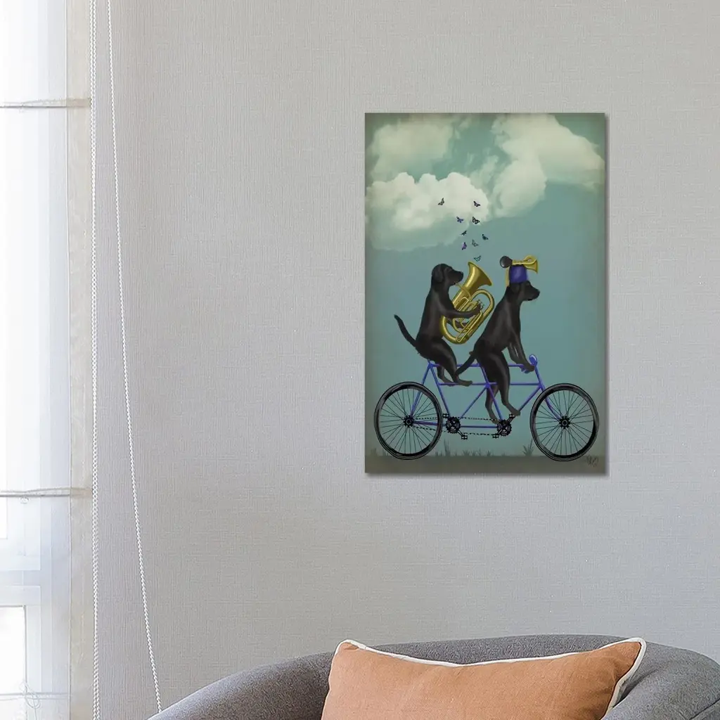 Icanvas "Black Labrador Tandem" By Fab Funky Canvas Print - 40x26x1.5