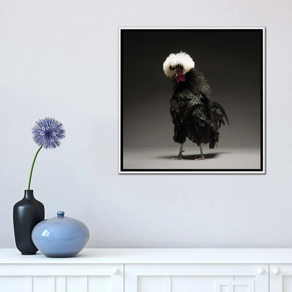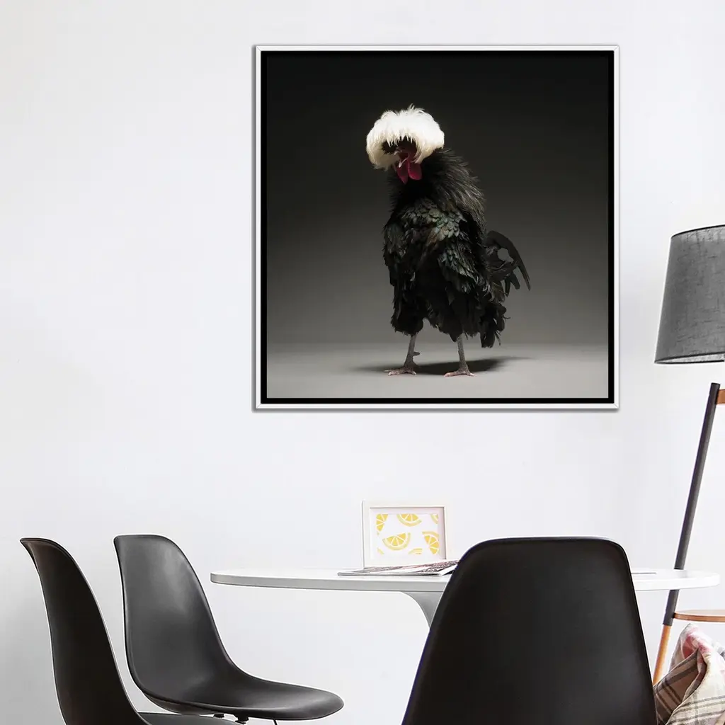 Icanvas "Black Polish Big" By Chicken Framed Canvas Print - White - 12x12