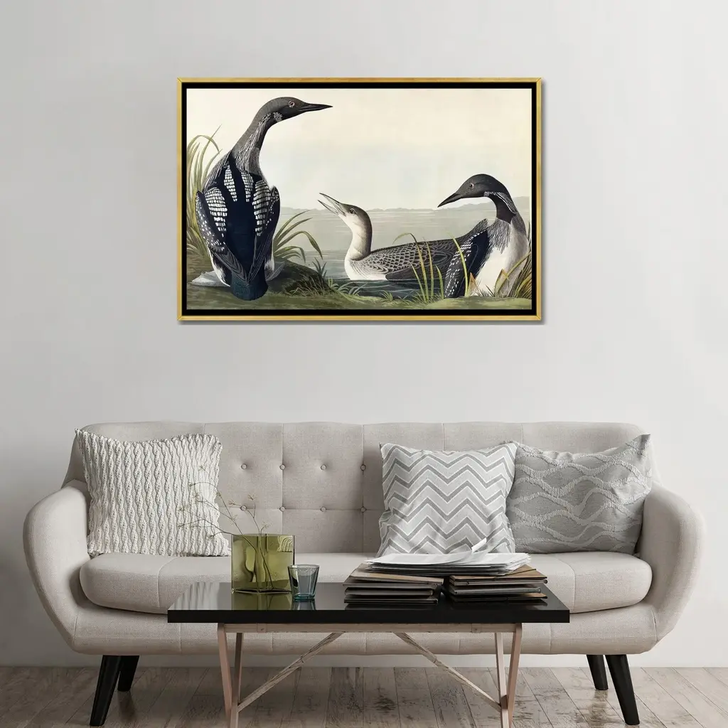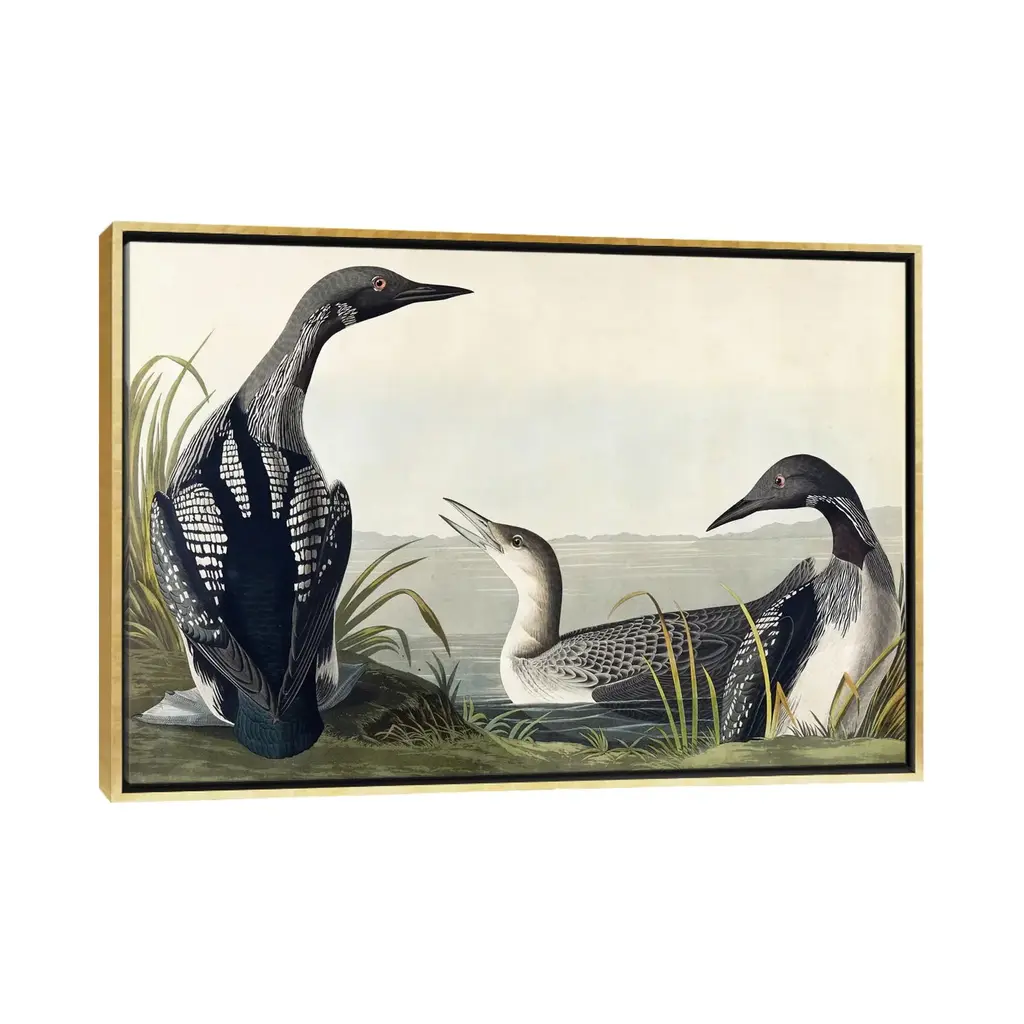 Icanvas "Black-Throated Diver " By John James Audubon Framed Canvas Print - Gold - 18x26