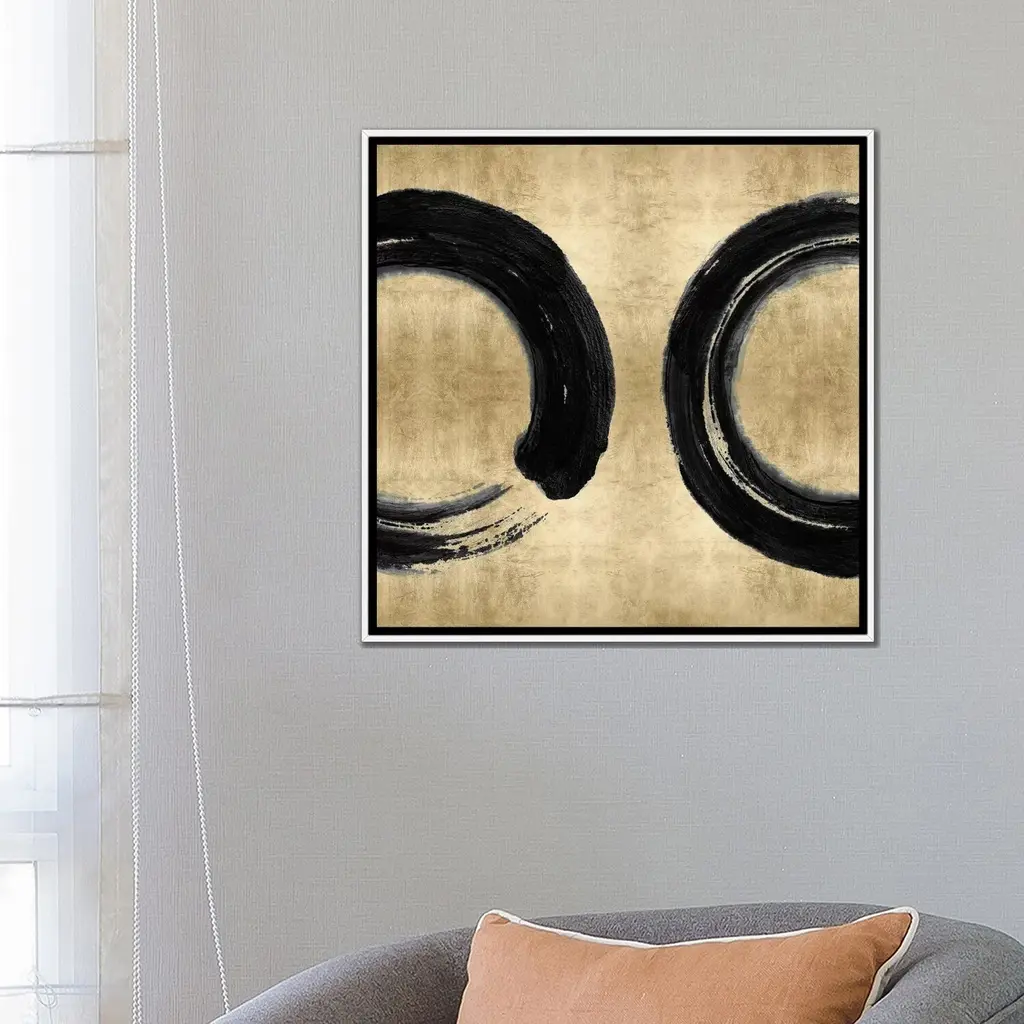 Icanvas "Black Zen Circle On Gold Ii" By Ellie Roberts Framed Canvas Print - White - 12x12
