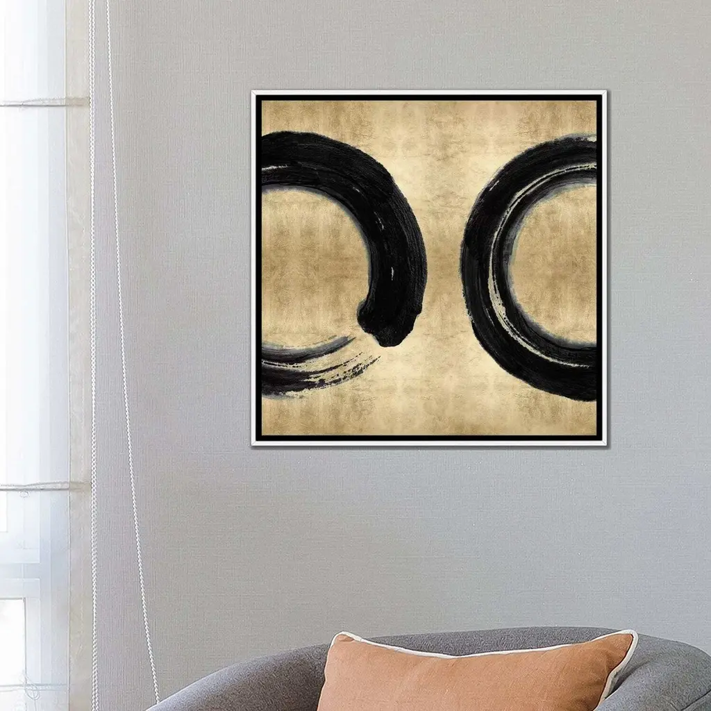 Icanvas "Black Zen Circle On Gold Ii" By Ellie Roberts Framed Canvas Print - White - 18x18