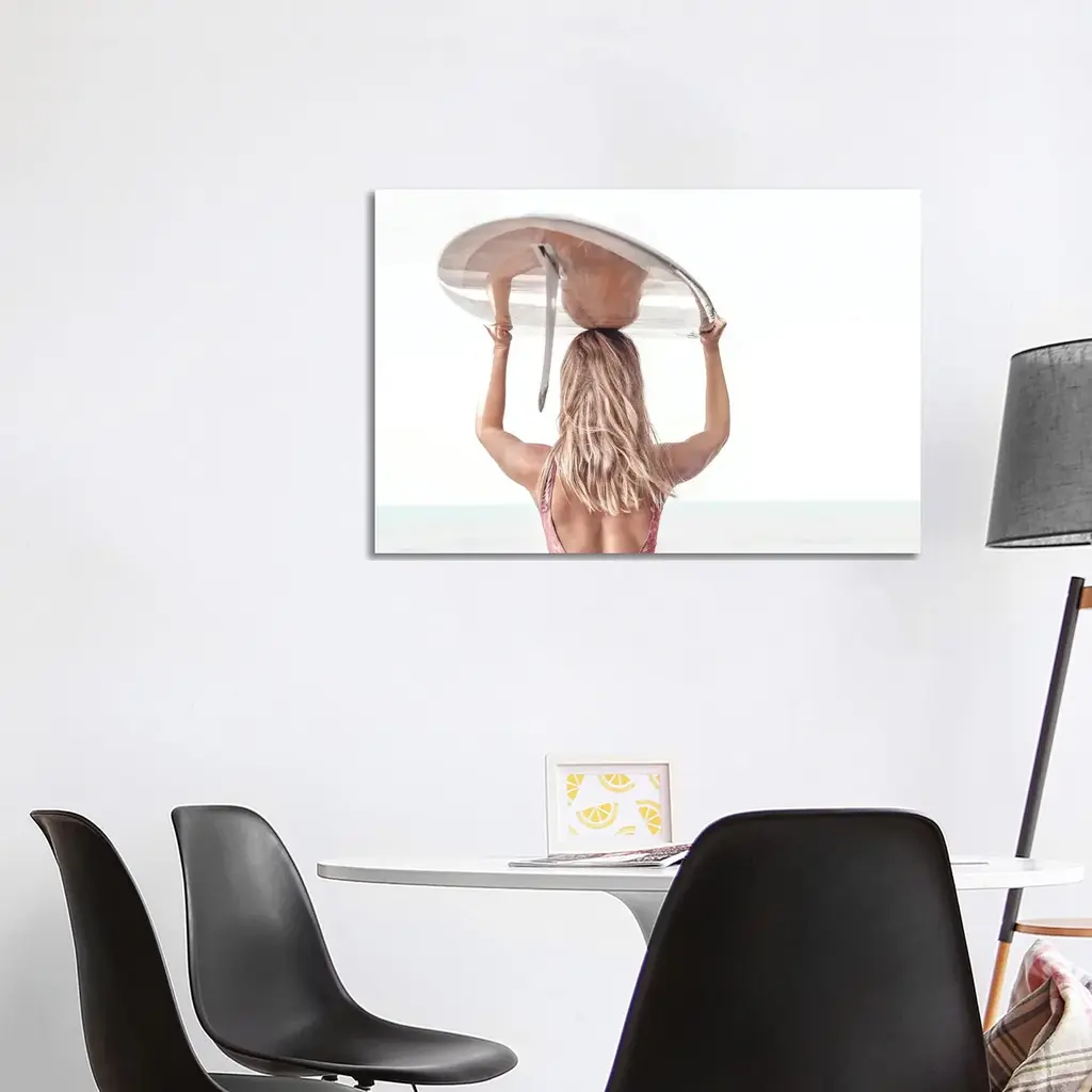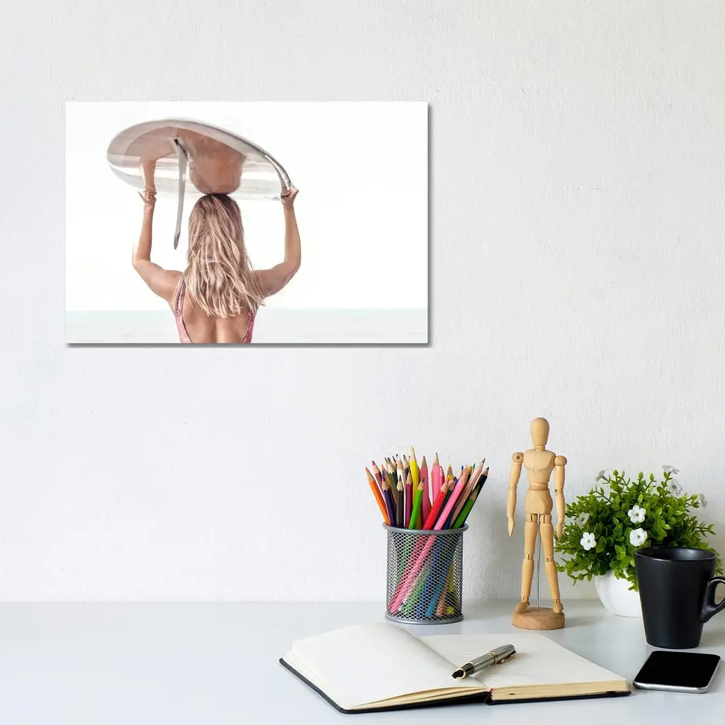 Icanvas "Blond Girl Carrying Surfboard" By Tiny Treasure Prints Canvas Print - 18x26x1.5