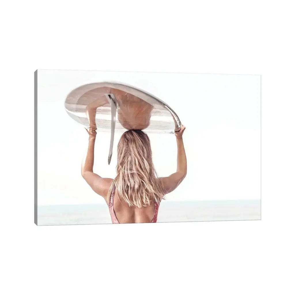Icanvas "Blond Girl Carrying Surfboard" By Tiny Treasure Prints Canvas Print - 8X12x0.75