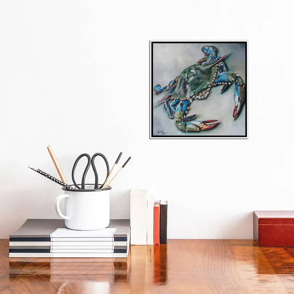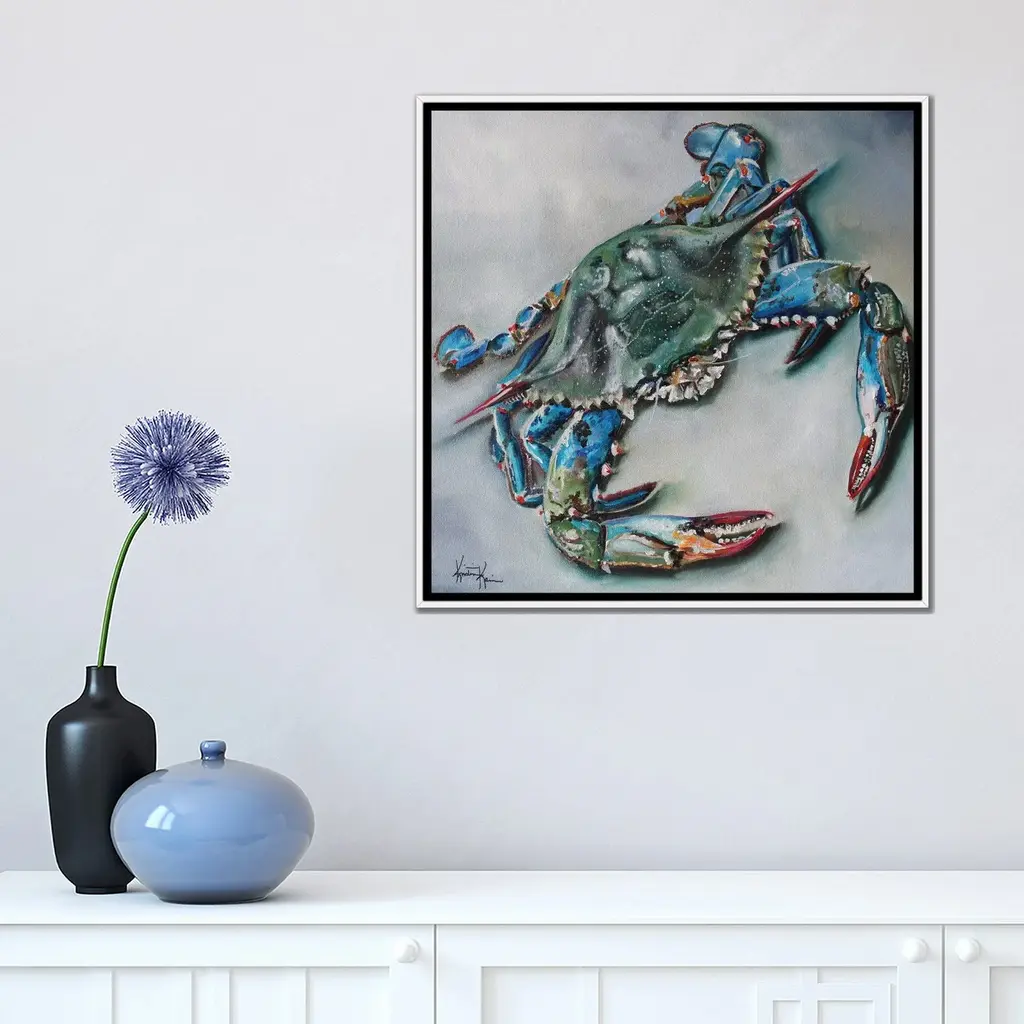 Icanvas "Blue Crab" By Kristine Kainer Framed Canvas Print - Black - 18x18