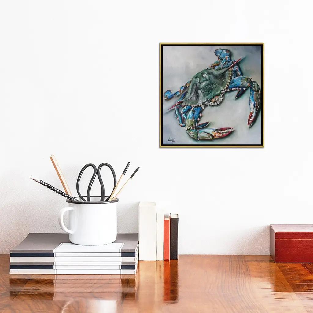 Icanvas "Blue Crab" By Kristine Kainer Framed Canvas Print - Black - 26x26