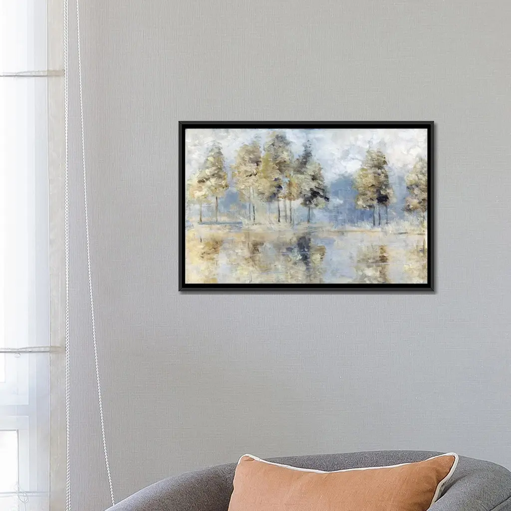 Icanvas "Blue Golden Forest" By Sally Swatland Framed Canvas Print - Black - 32x48