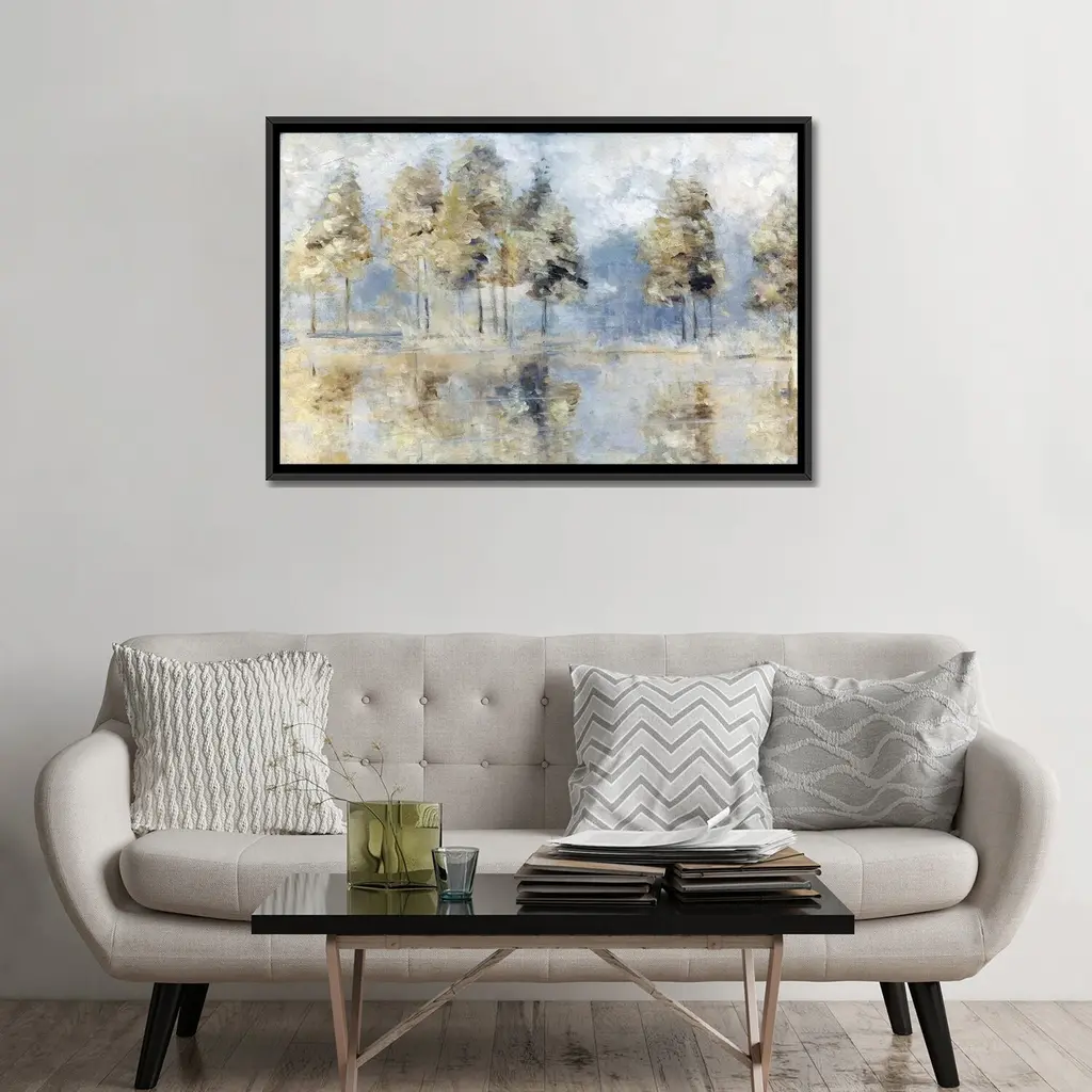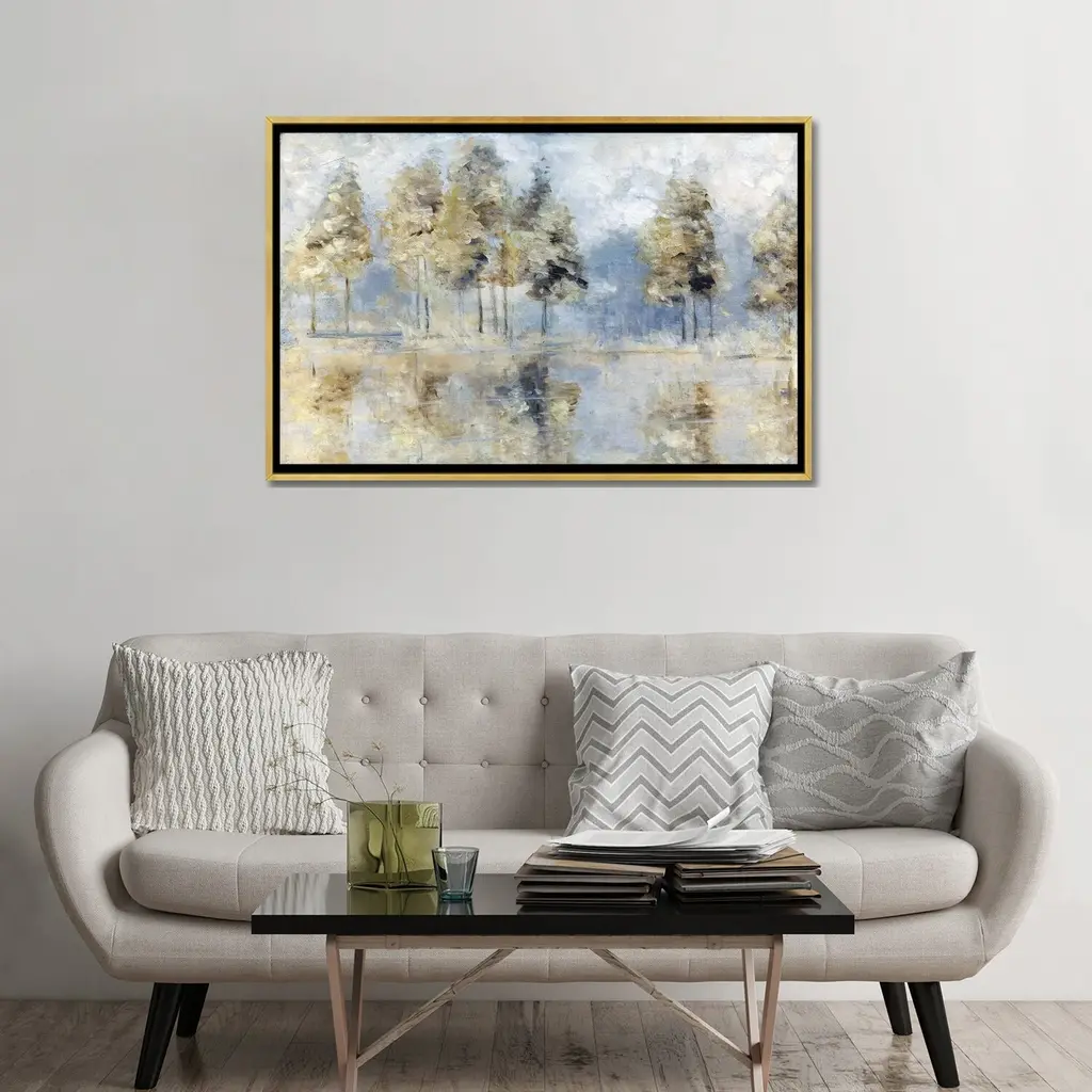 Icanvas "Blue Golden Forest" By Sally Swatland Framed Canvas Print - Gold - 32x48