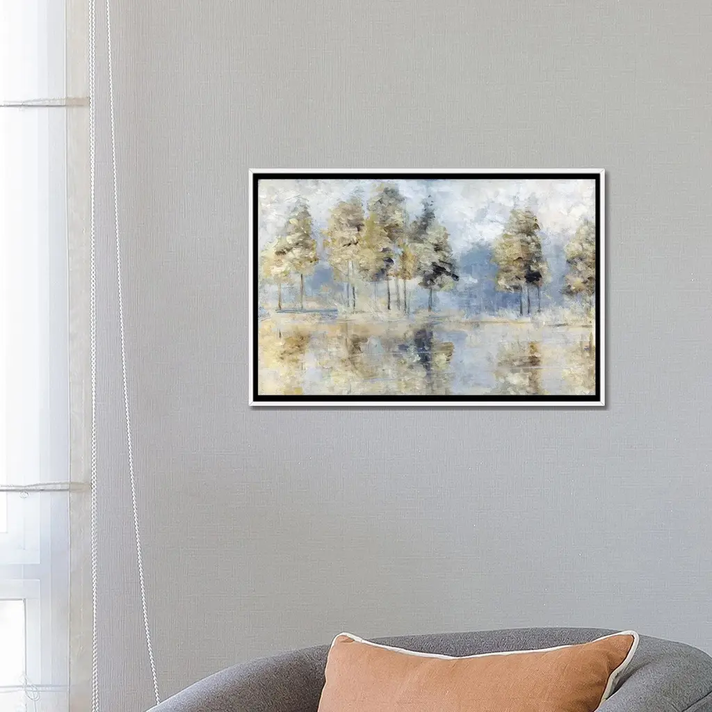 Icanvas "Blue Golden Forest" By Sally Swatland Framed Canvas Print - White - 26x40