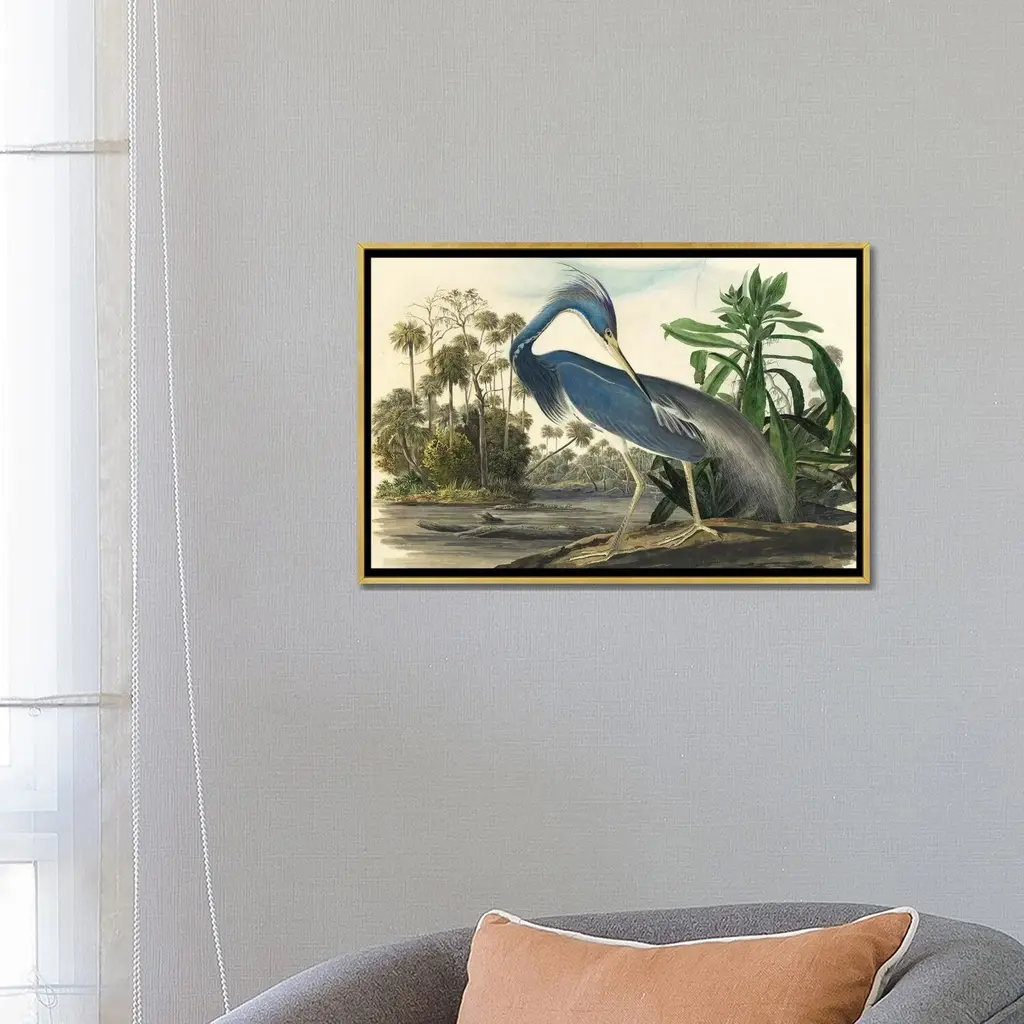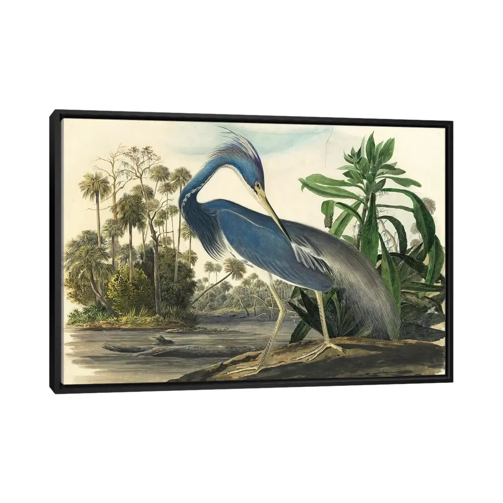 Icanvas "Blue Heron" By Vintage Apple Collection Framed Canvas Print - Black - 26x40