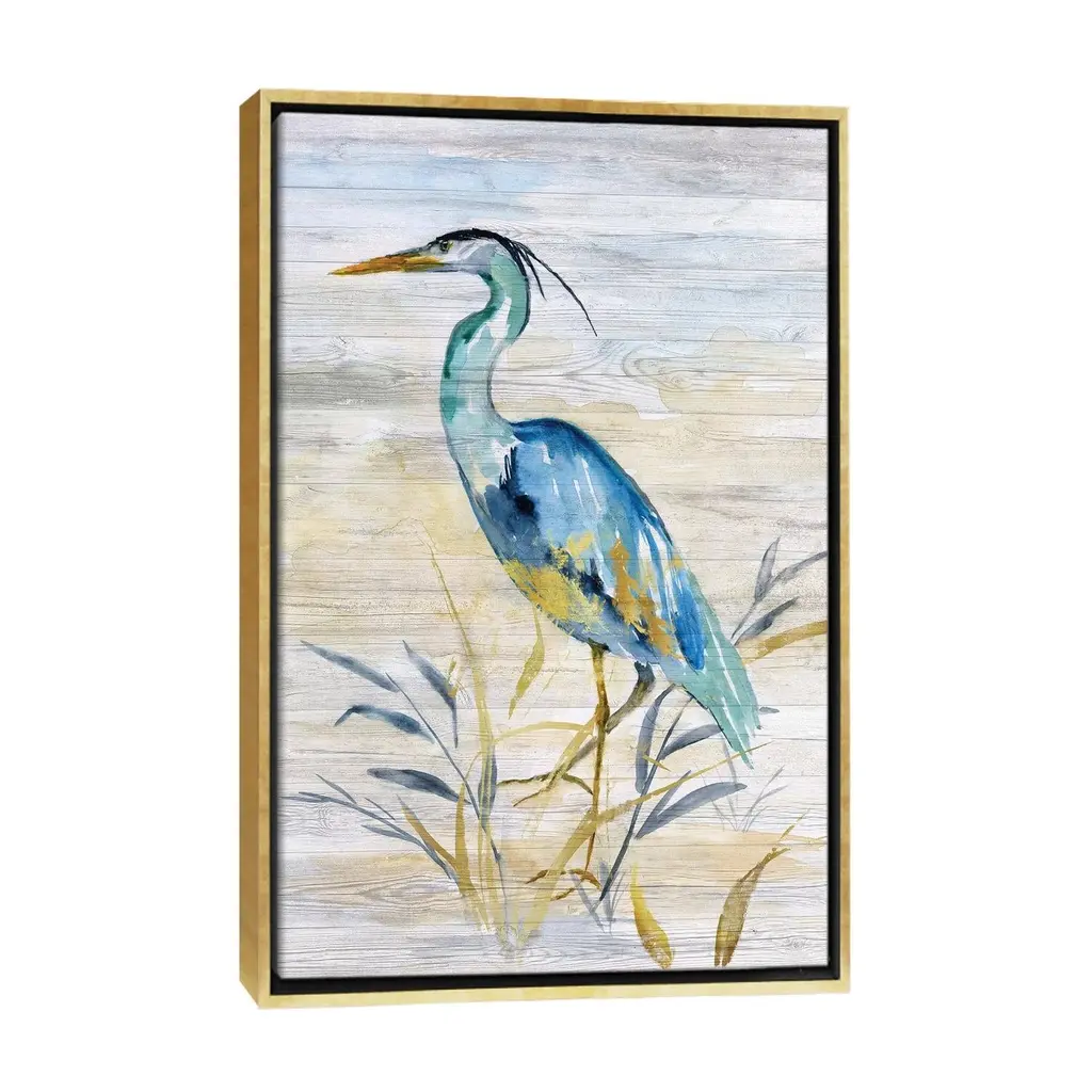 Icanvas "Blue Heron Ii" By Nan Framed Canvas Print - Gold - 26x18