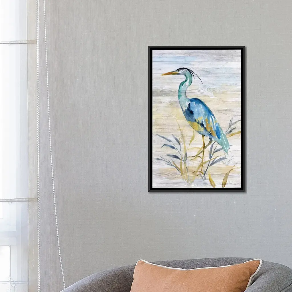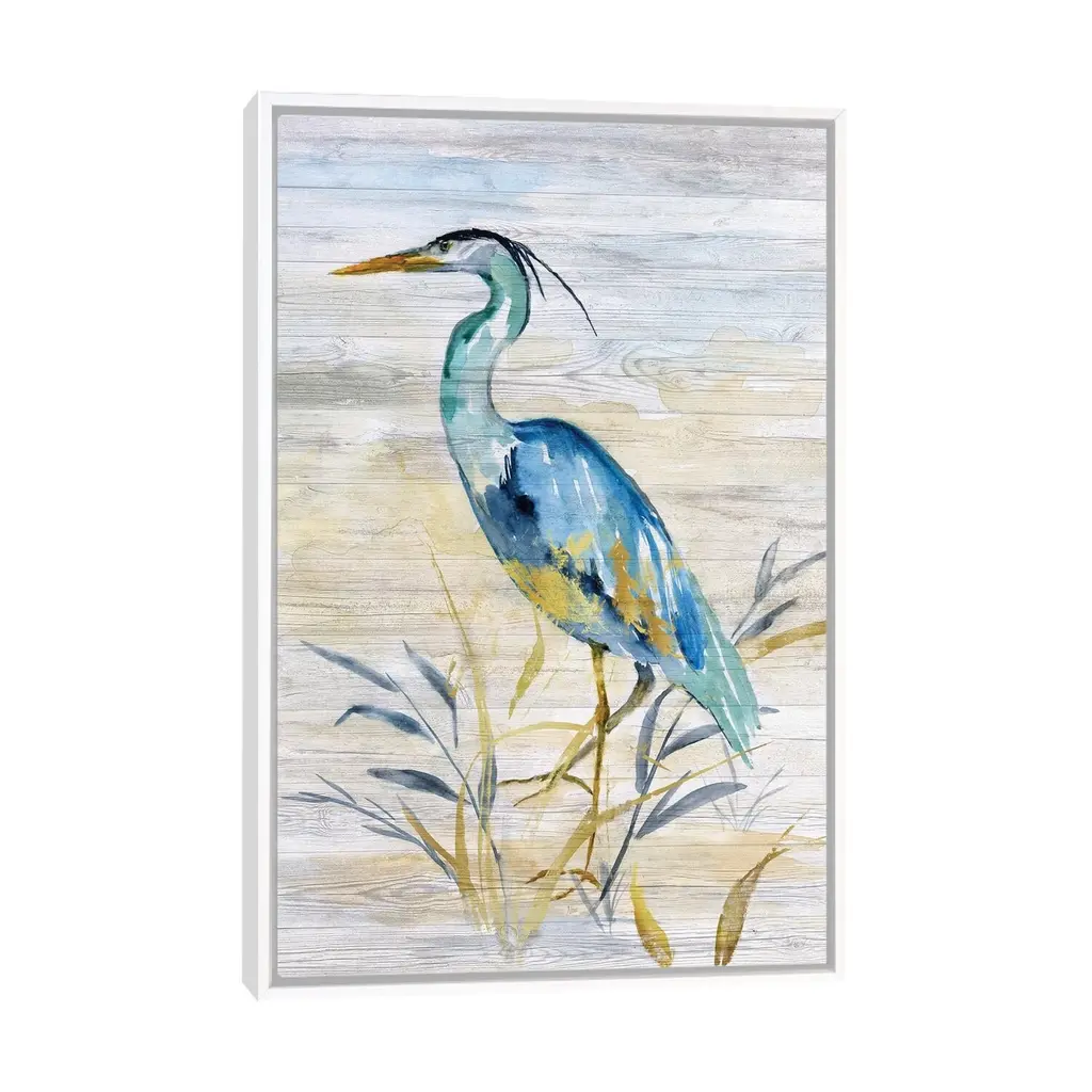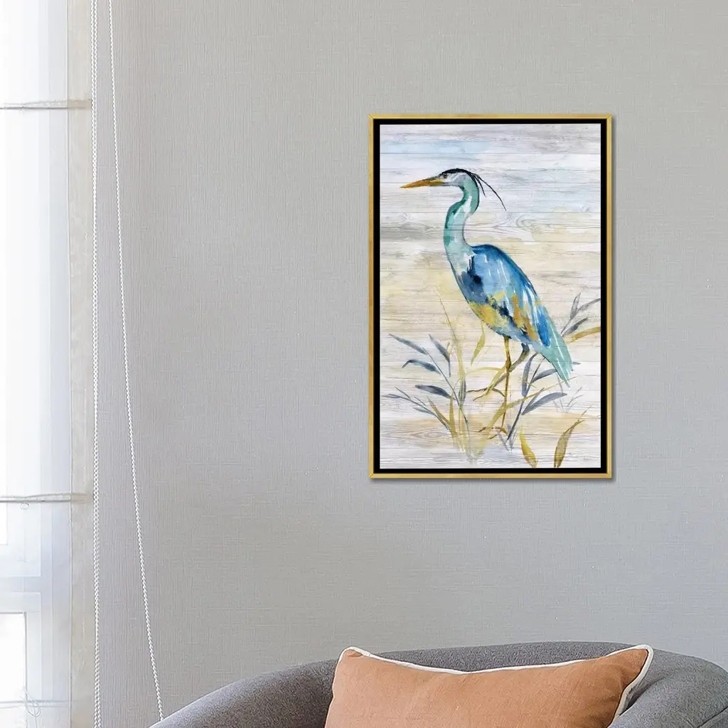 Icanvas "Blue Heron Ii" By Nan Framed Canvas Print - Gold - 48x32