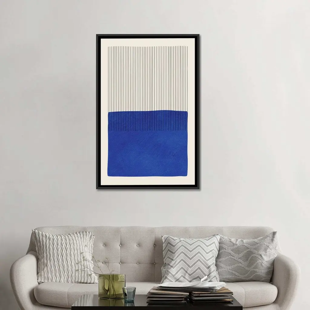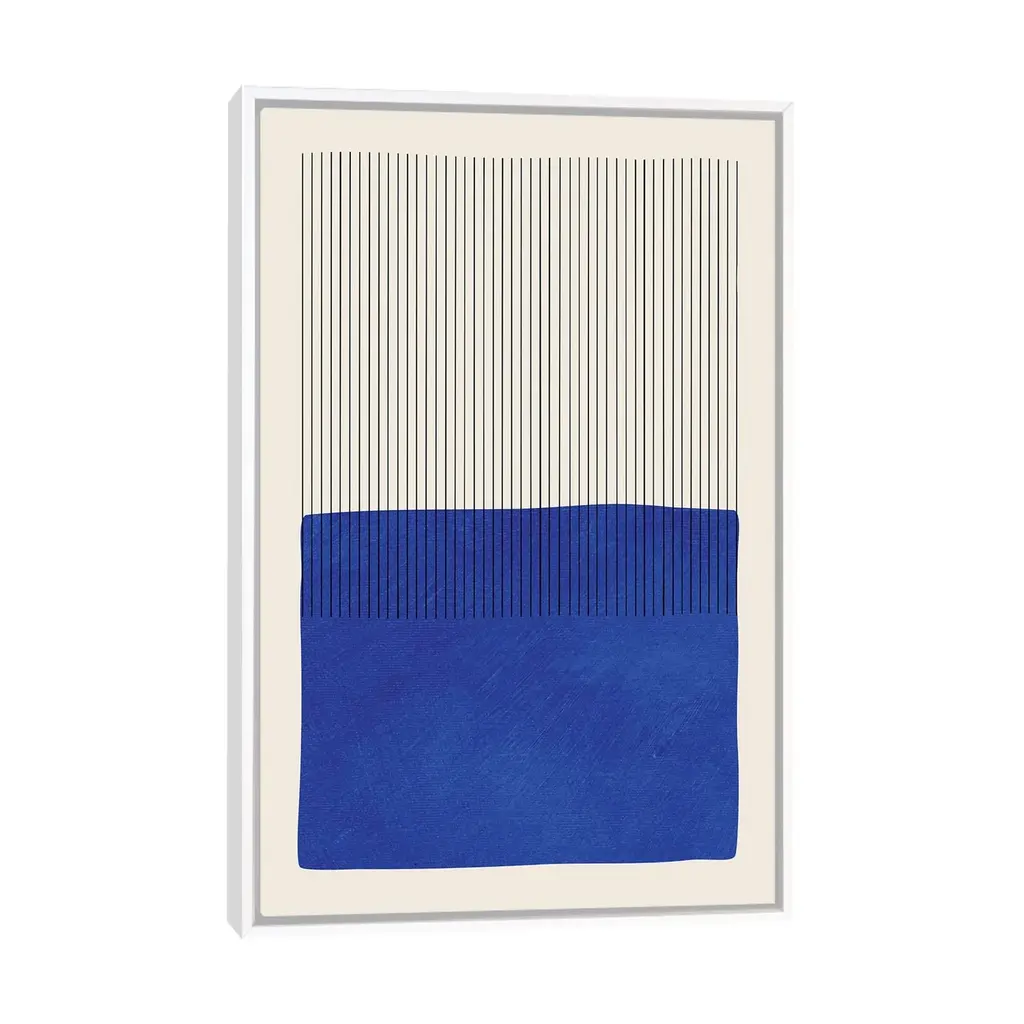Icanvas "Blue Matisse Vertical Lines" By Emcdesignlab Framed Canvas Print - Gold - 26x18