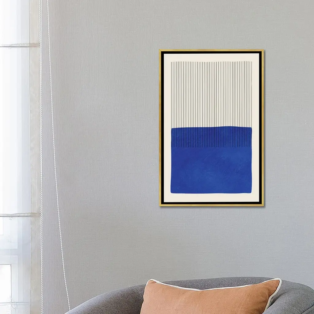 Icanvas "Blue Matisse Vertical Lines" By Emcdesignlab Framed Canvas Print - Gold - 48x32