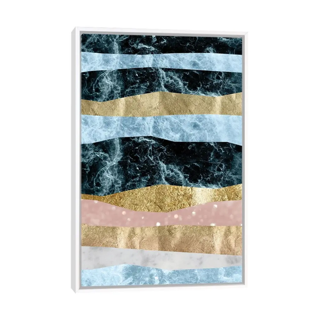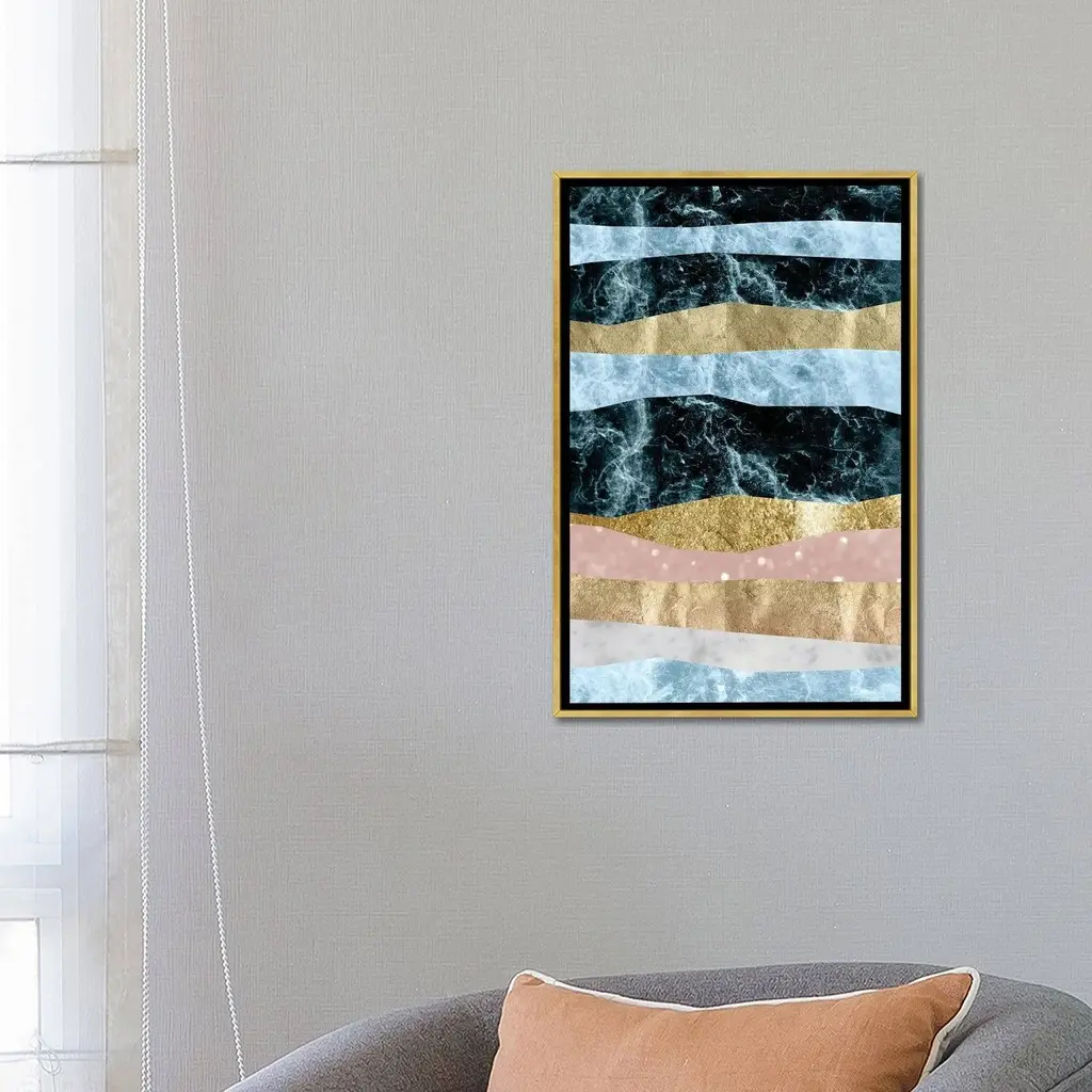 Add a touch of elegance to your space with the iCanvas "Blue Ocean Waves I" by Anita's & Bella's Art Framed. This Giclee canvas artwork offers the texture, look, and feel of a fine-art painting. Crafted in the USA with artist-grade canvas, it is professionally hand-stretched and stapled over North American pine-wood bars in Gallery Wrap style. The canvas is mounted to a 2-inch thick, elegant hardwood frame, creating a "floating" illusion with a 3/8" space between the art and frame. The fade-resistant archival inks ensure vibrant color reproduction for decades, even in strong light. Elevate your decor with this contemporary and uncompromising style.Features: