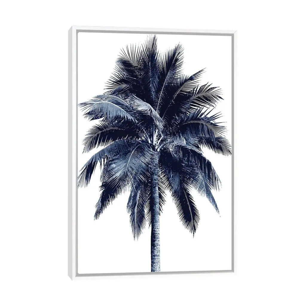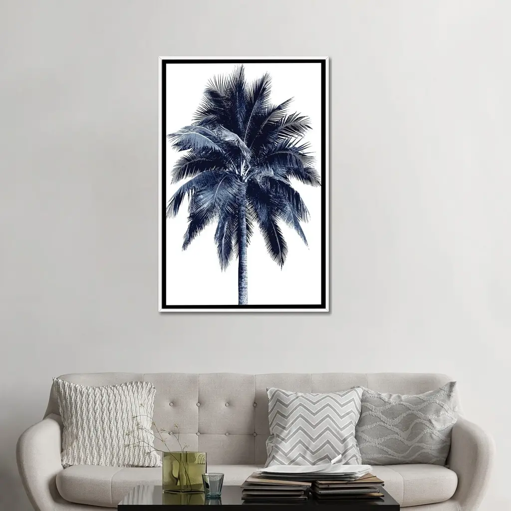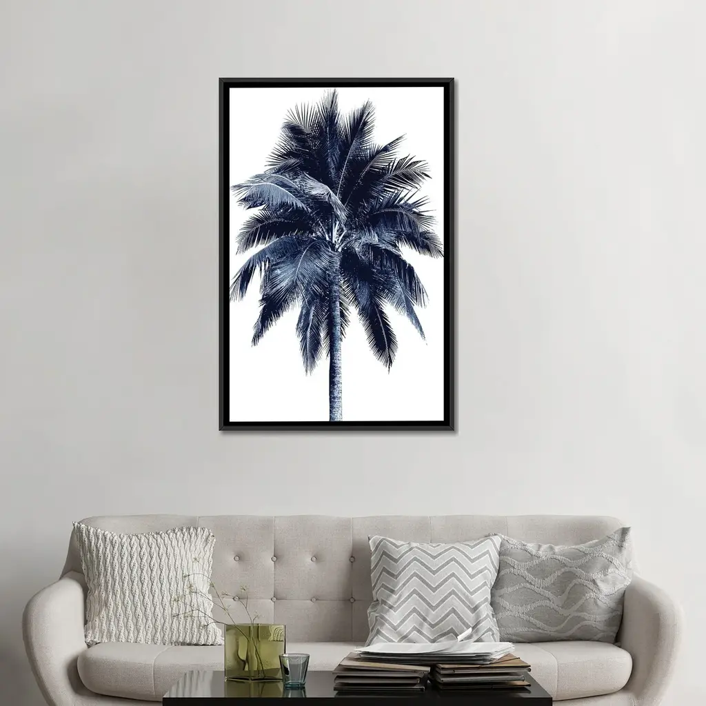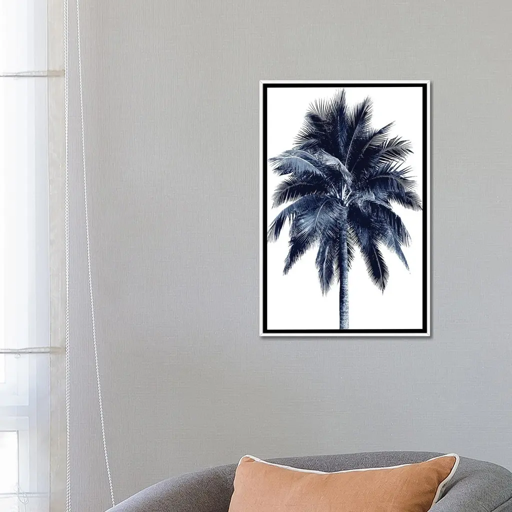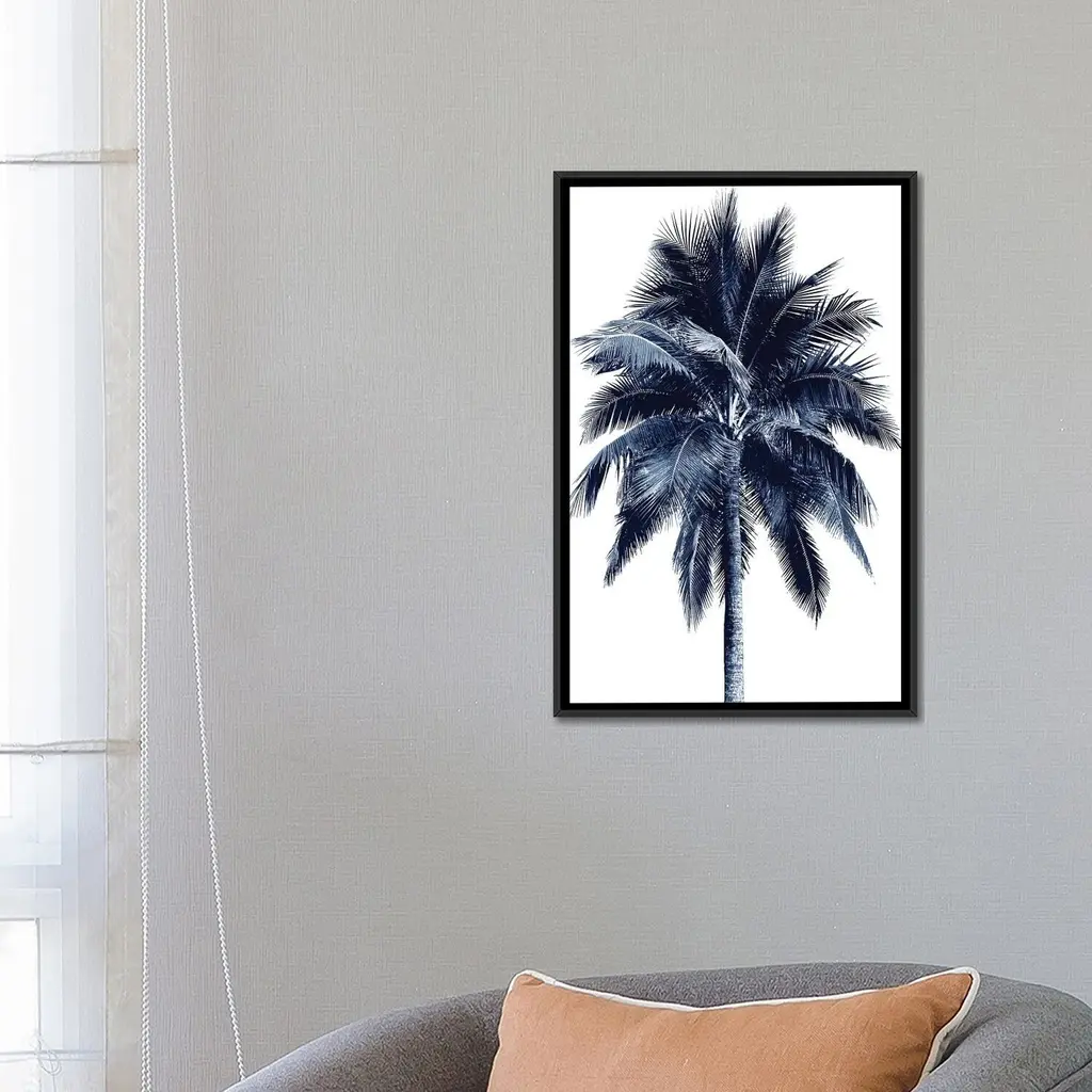 Icanvas "Blue Palm Tree I" By Devon Davis Framed Canvas Print - Black - 26x18