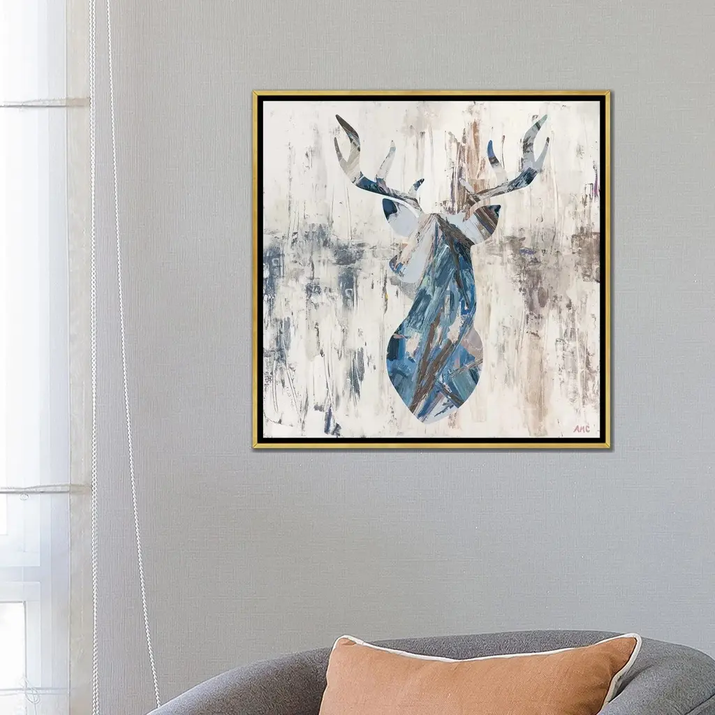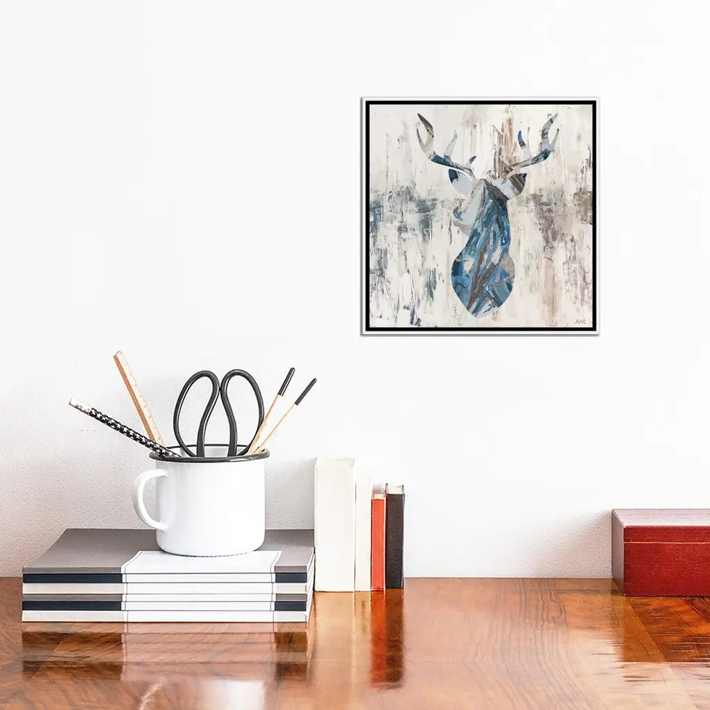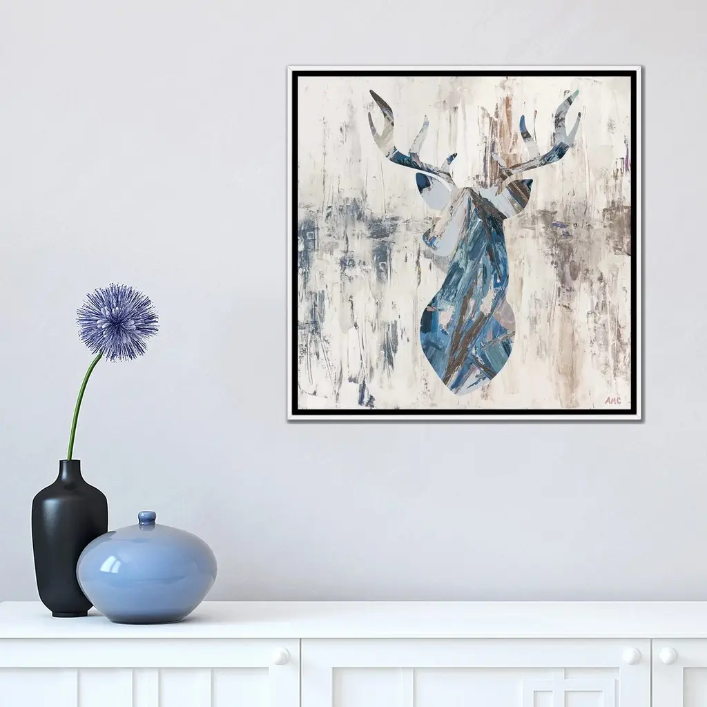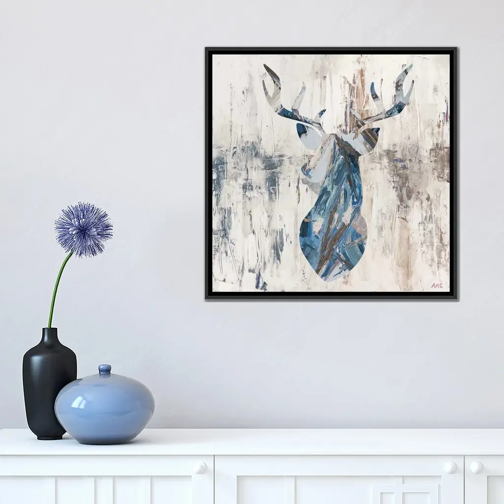 Icanvas "Blue Rhizome Deer Bust" By Ann Marie Coolick Framed Canvas Print - Black - 12x12
