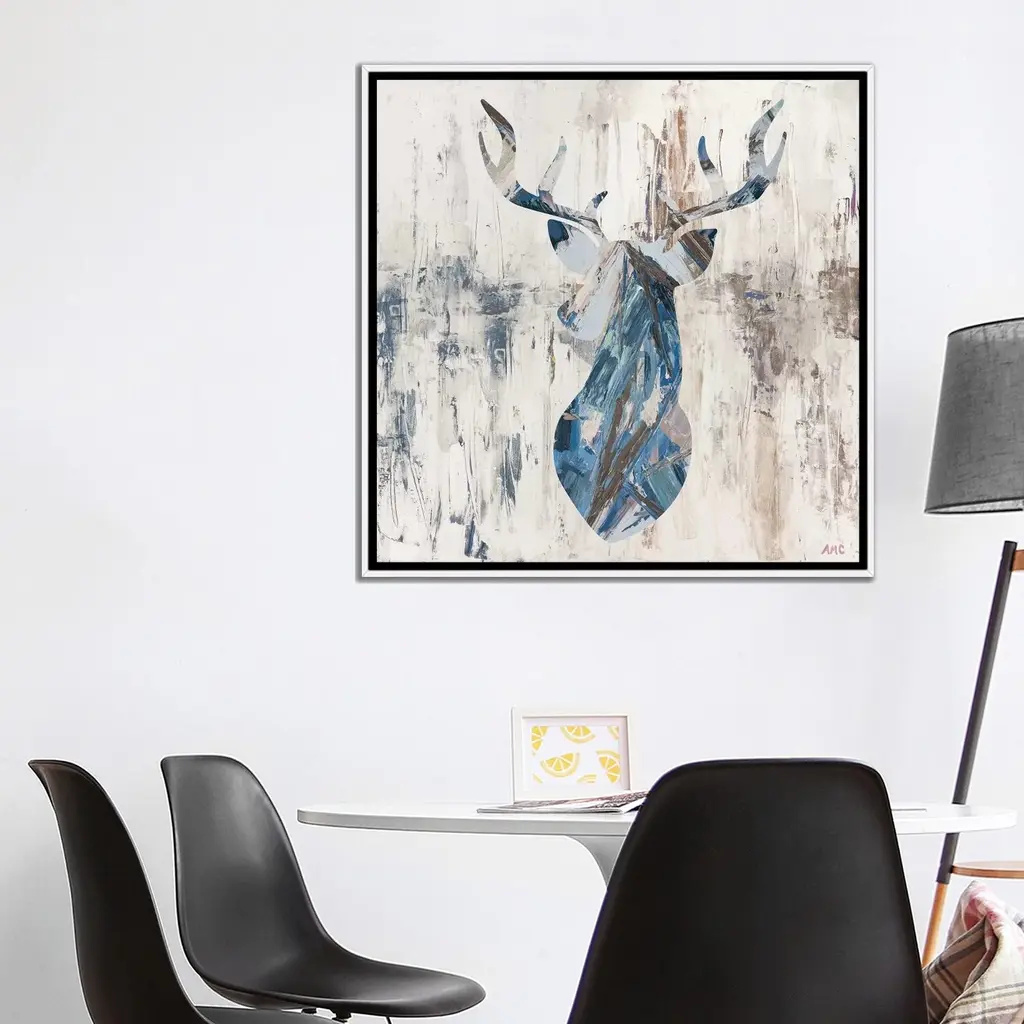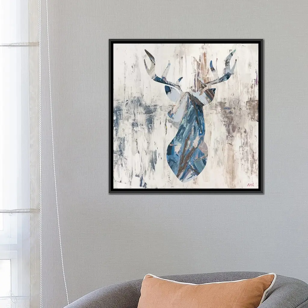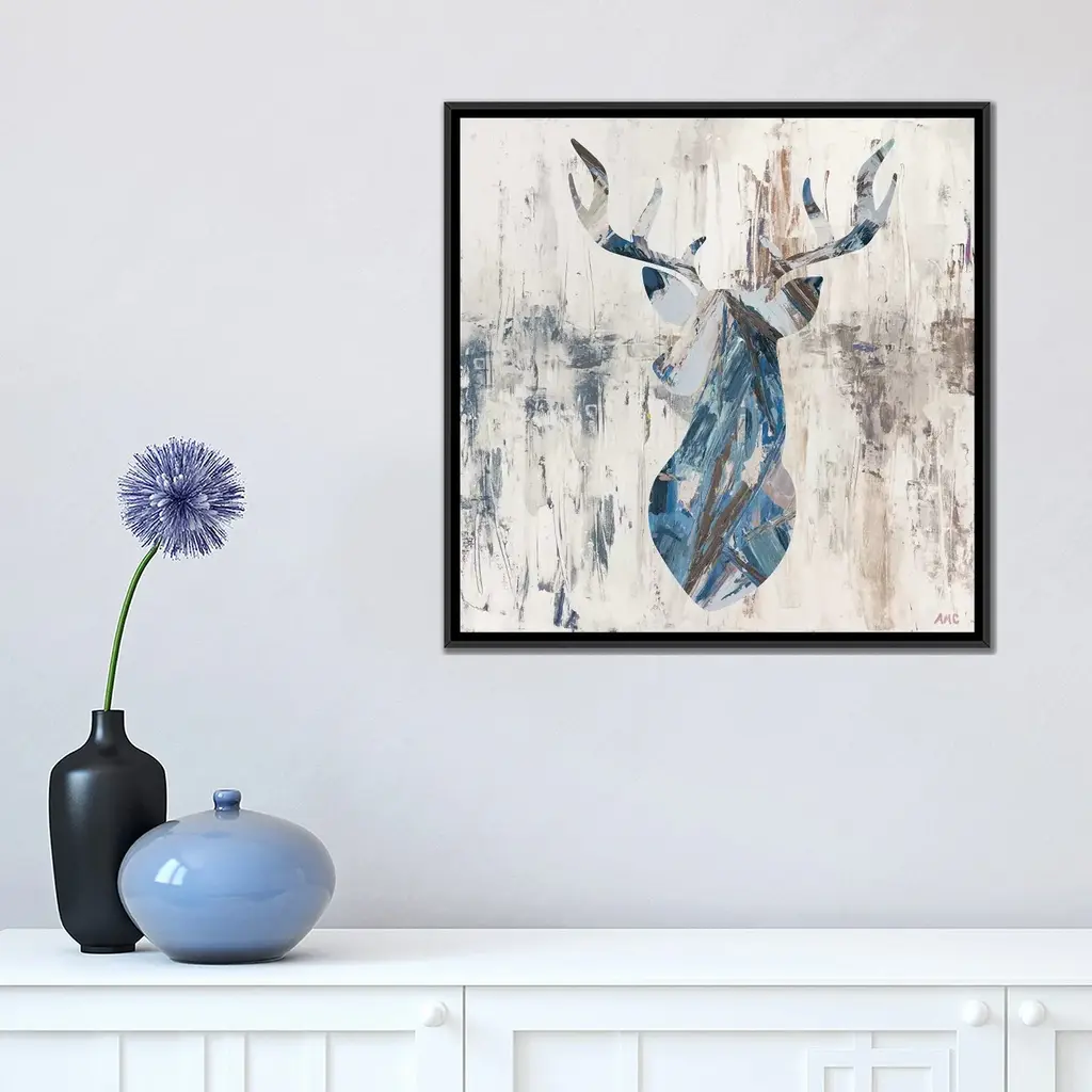 Icanvas "Blue Rhizome Deer Bust" By Ann Marie Coolick Framed Canvas Print - Black - 26x26